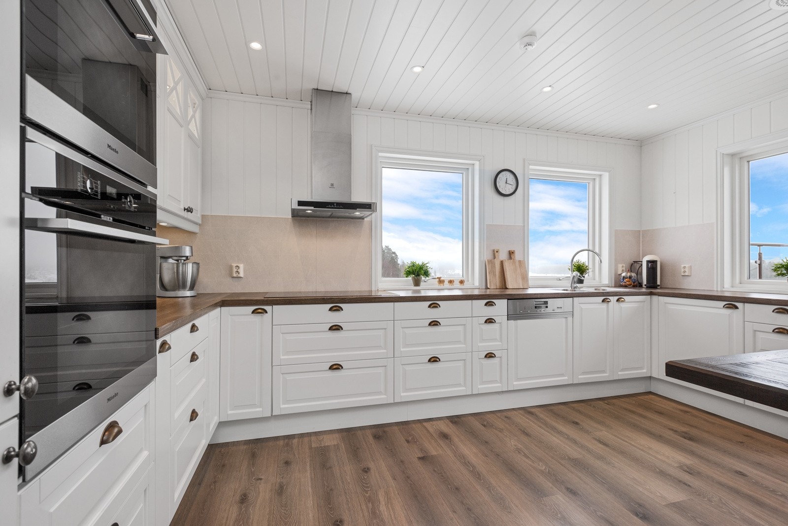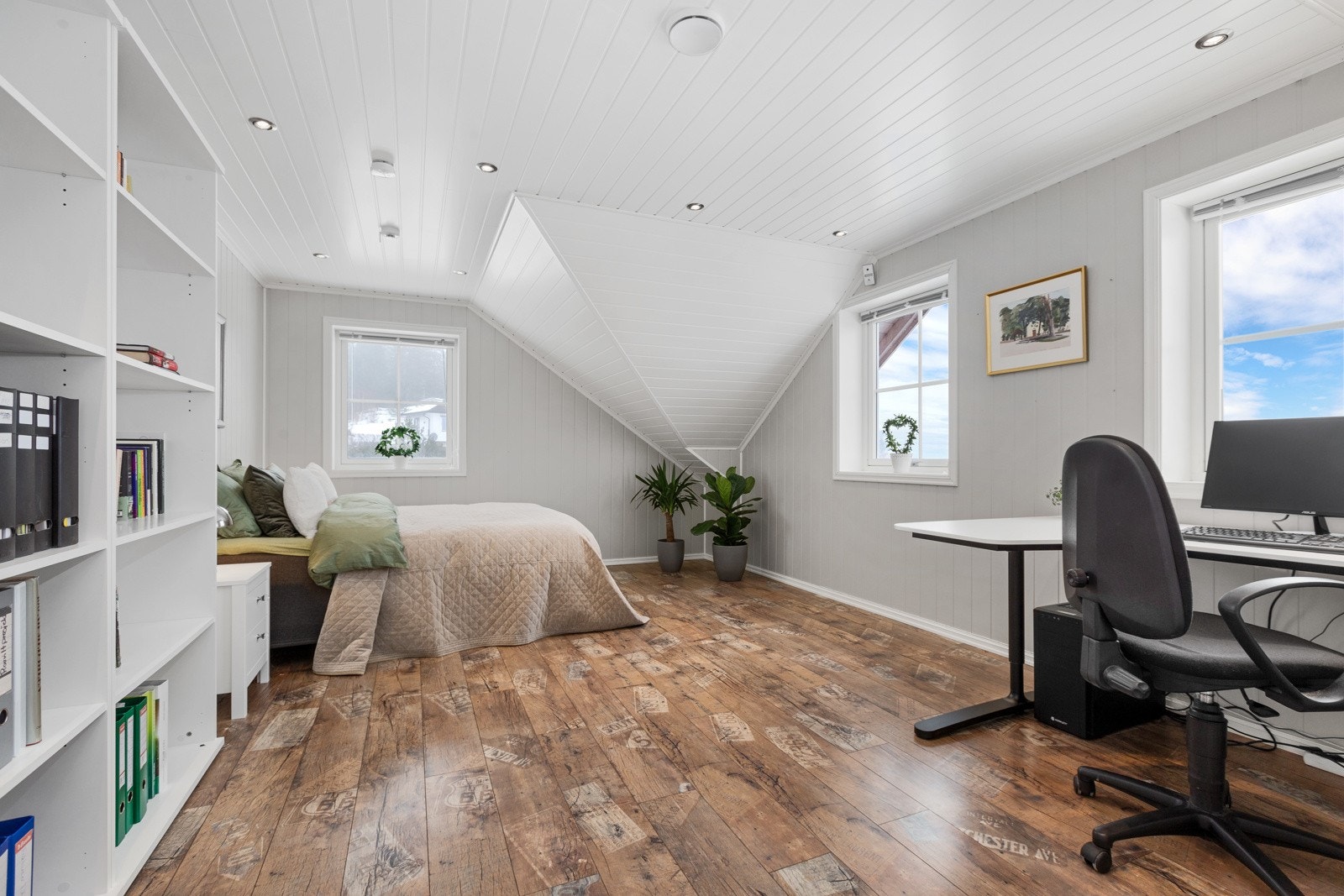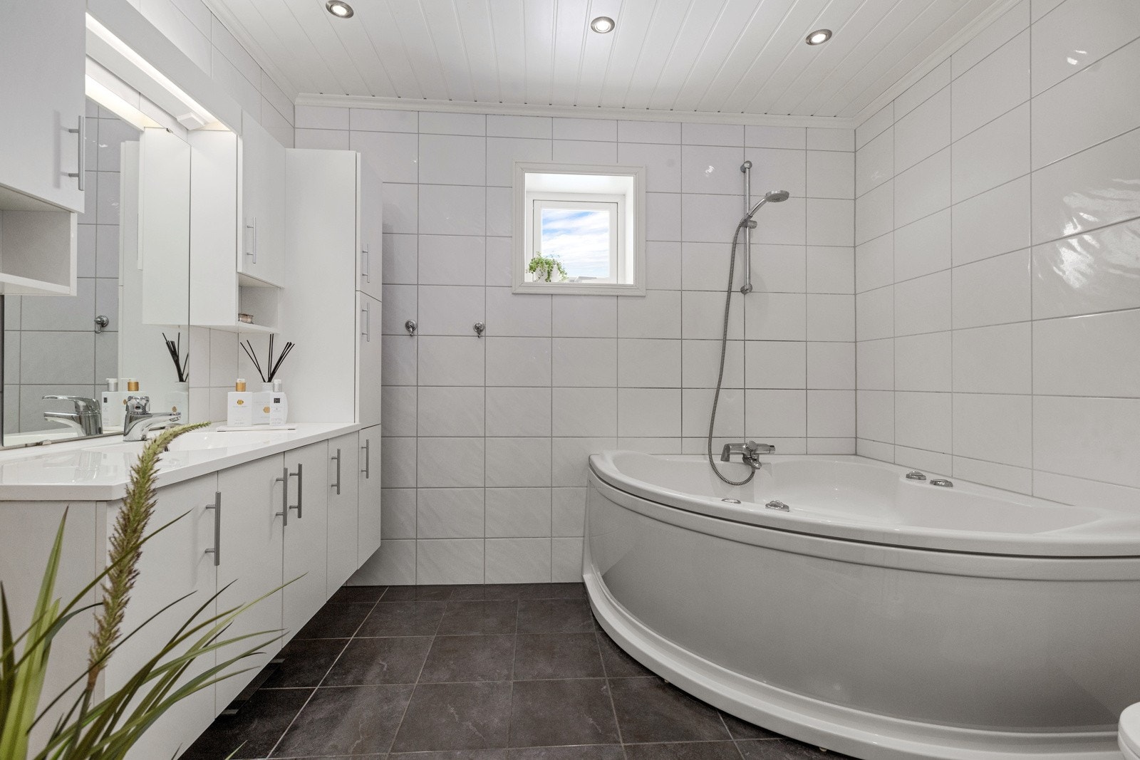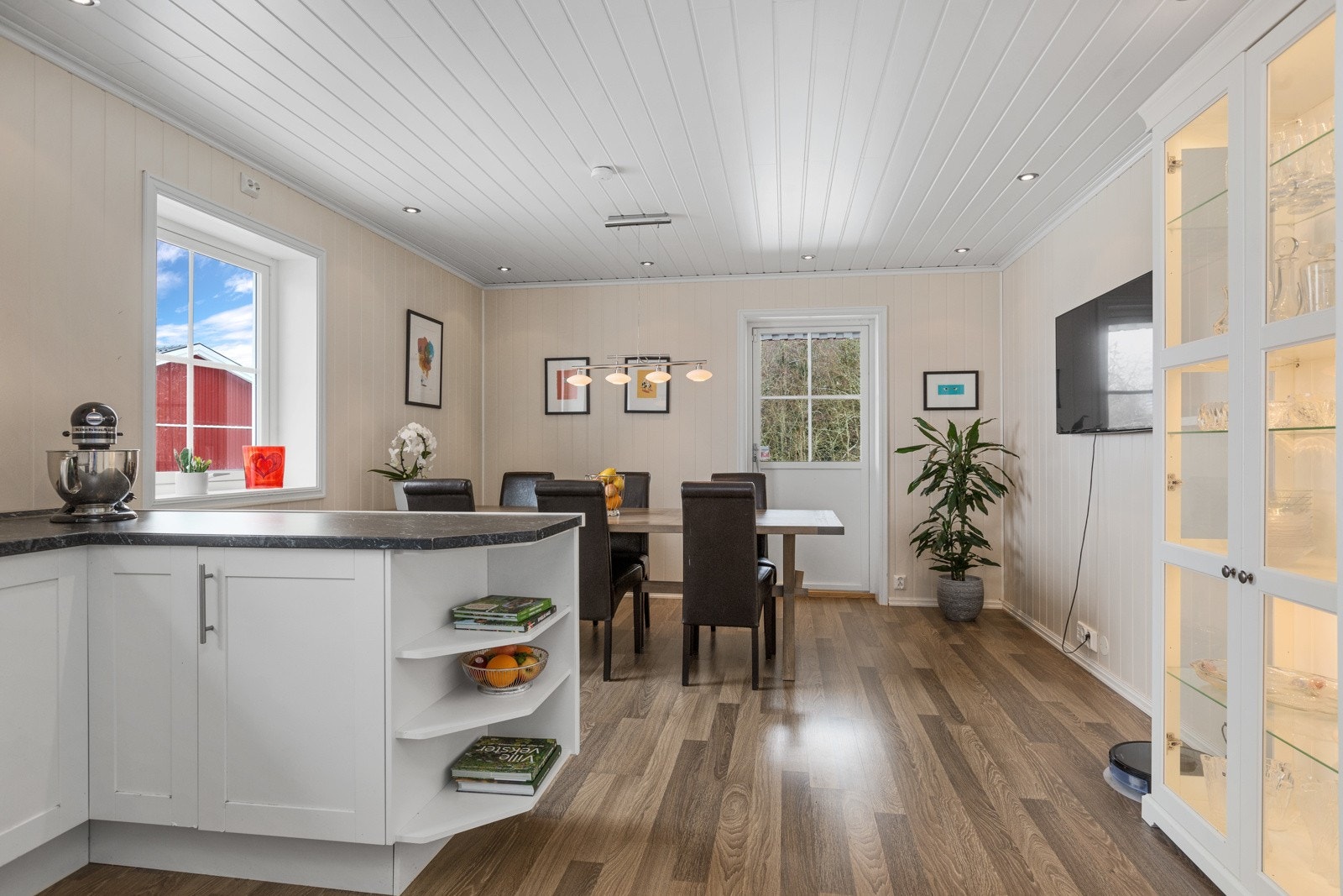 - Stort hovedhus med 4 soverom, 2 bad, stue med peisovn og 68 m2 terrasse