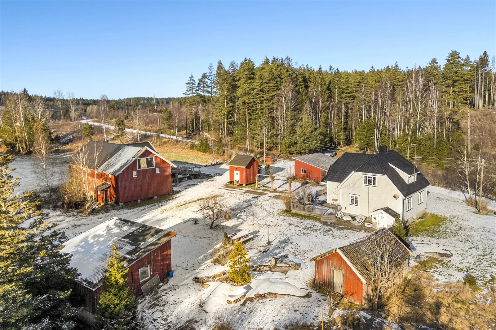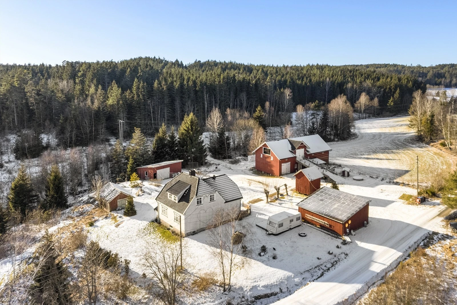 Landbrukseiendom på ca. 80 daa med flott beliggenhet | Våningshus og 5 øvrige bygg | 49,8 daa fulldyrka jord