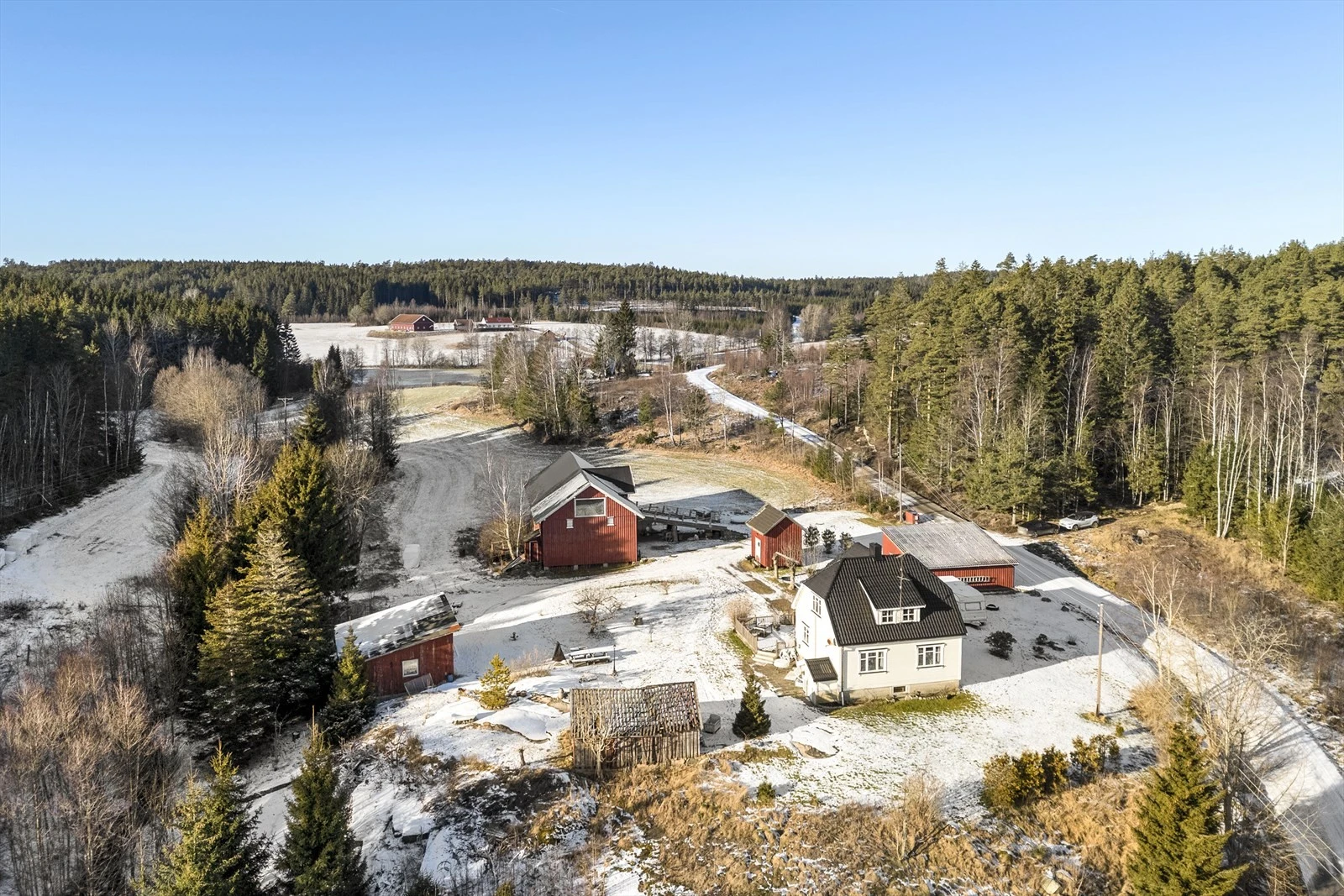 Velkommen til Kongsbergveien 1 «Brækkebingen» – En idyllisk beliggende landbrukseiendom på ca. 80 dda. Eiendommen har 49,8 daa fulldyrka jord og 22,7 dda produktiv skog. Det foreligger en leieavtale på jord. Nydelig tun bestående av stor gruset gårdsplass, og opparbeidet hage med prydbusker, bærbusker, frukttrær og beplantning. På eiendommen er det oppført våningshus, låve/driftsbygning, garasje, vognskjul, stabbur, og vedskjul/hønsehus. Våningshuset har 2 plan med 4 soverom, to stuer, kjøkken og bad vaskerom, samt lagringsplass i kjeller. Det må generelt påregnes en del vedlikehold og oppgradering av bygningsmassen.