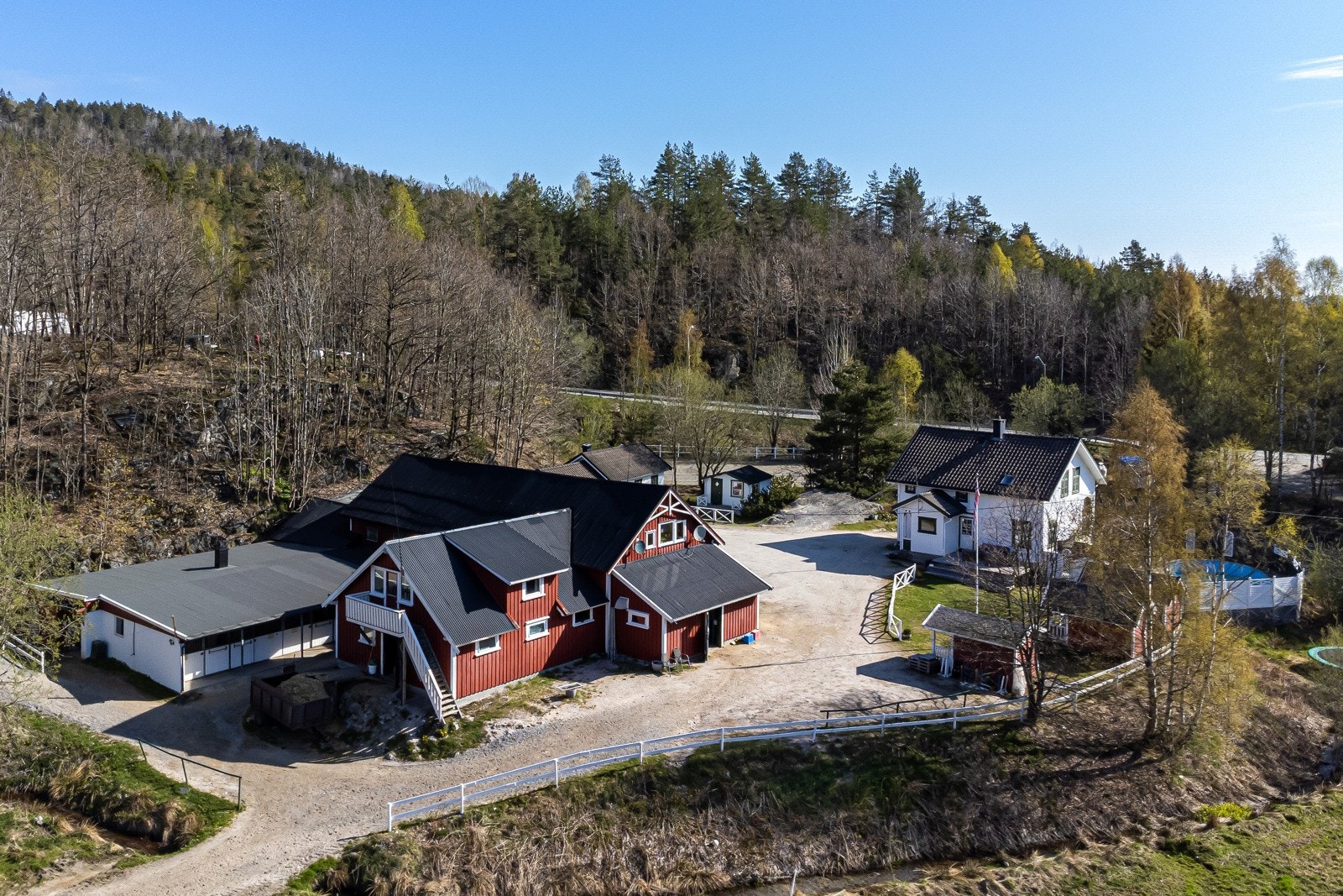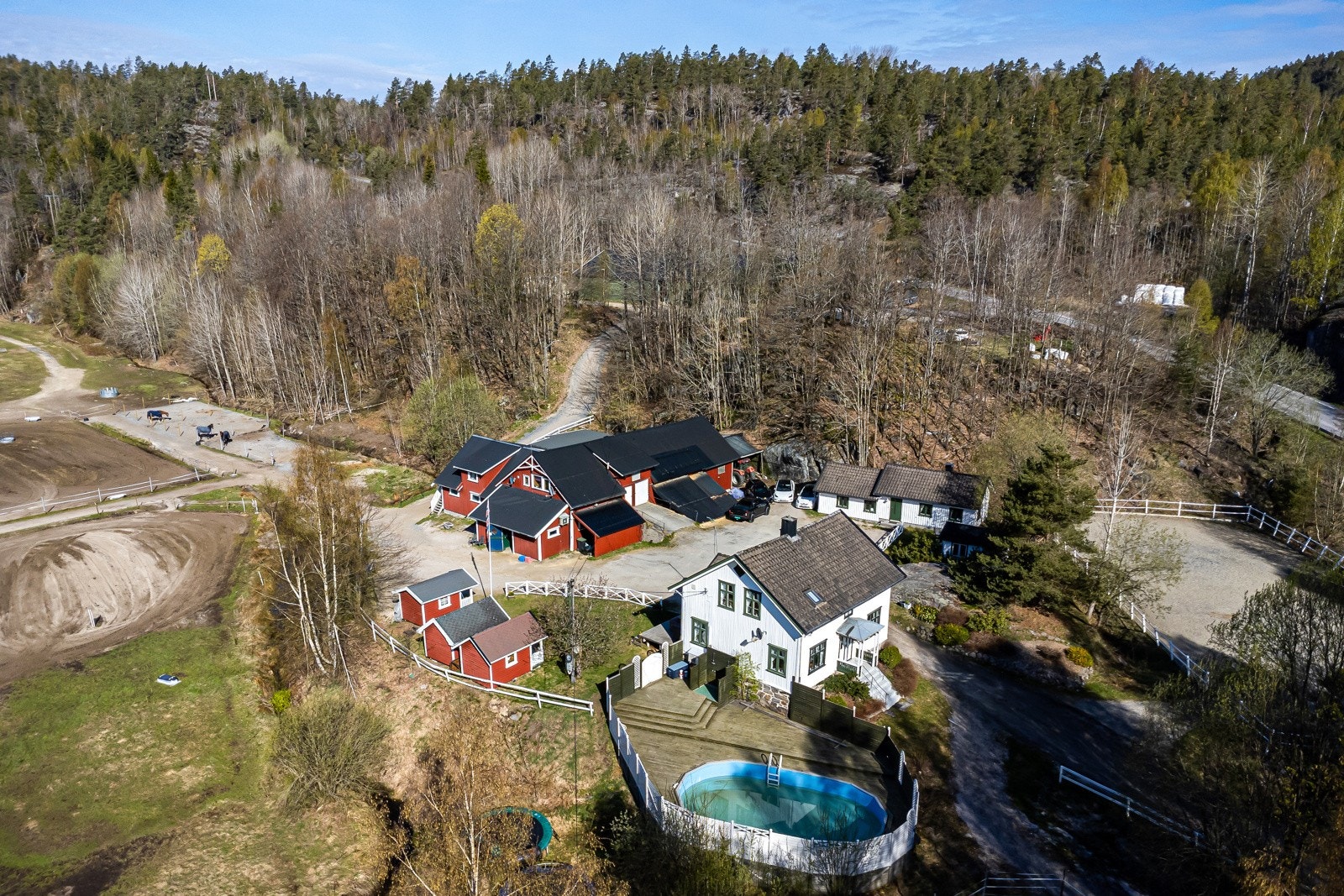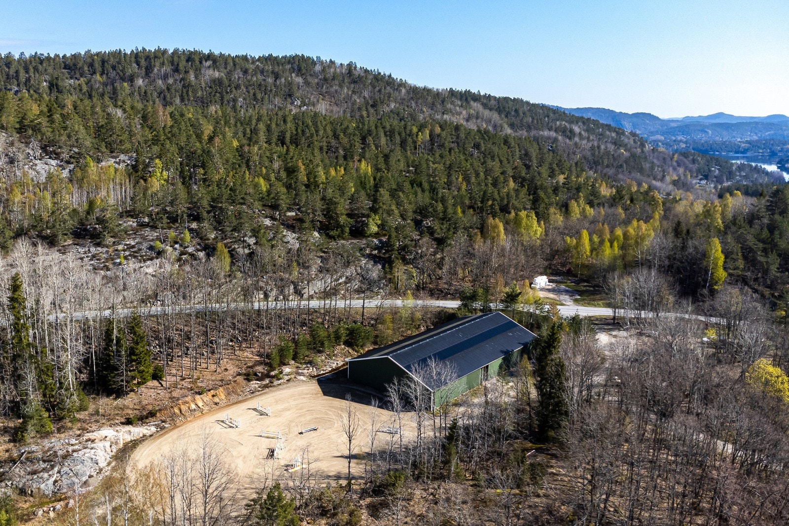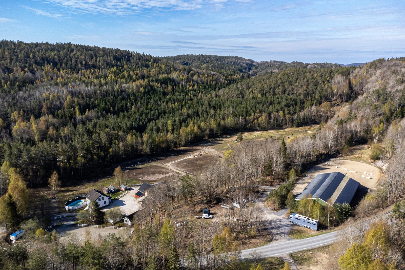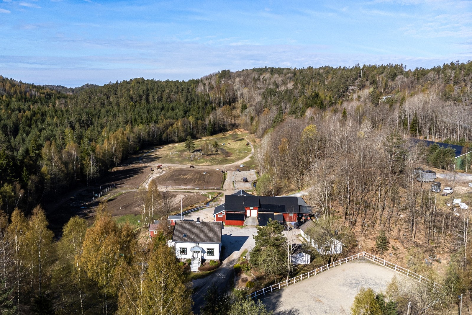 Strømdal gård i Kragerø | Hesteeiendom med 25 stallplasser, ridehall og 2 ridebaner | 19 daa. dyrket, 546 daa. skog og 586 daa. totalt