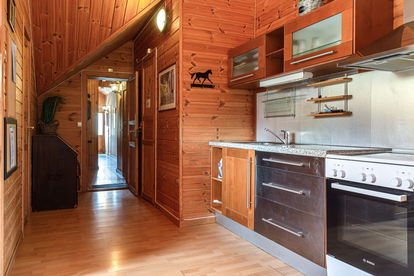 Kjøkkeninnredningen er av eldre dato, og den mangler bruksfunksjoner/løsninger som er forventbart på et kjøkken.