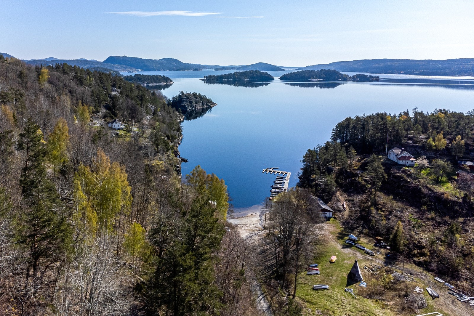 586 dekar tilpasset hestehold | Egen brygge og strand ved sjøen