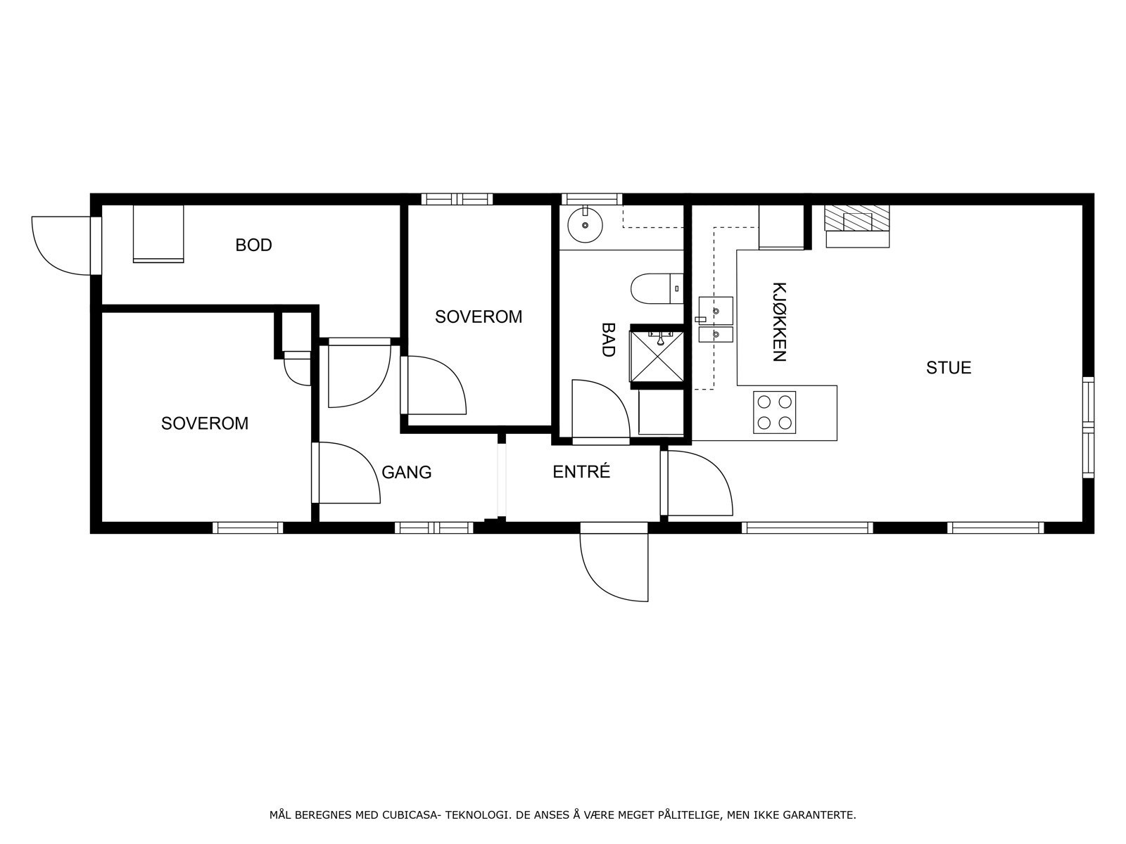 1. etasje primærrom: Entré, kjøkken, stue, to soverom, bad og bi-entré