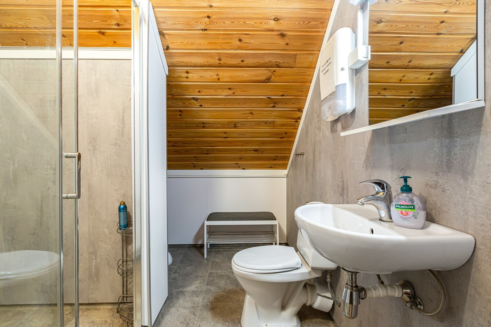 Det er påvist at overflater har noe skader. Innredningen har noe slitasje, dog ikke vesentlig utover hva som må forventes ved normal bruk i en slik tidsperiode. Avløp er fuget under kum.