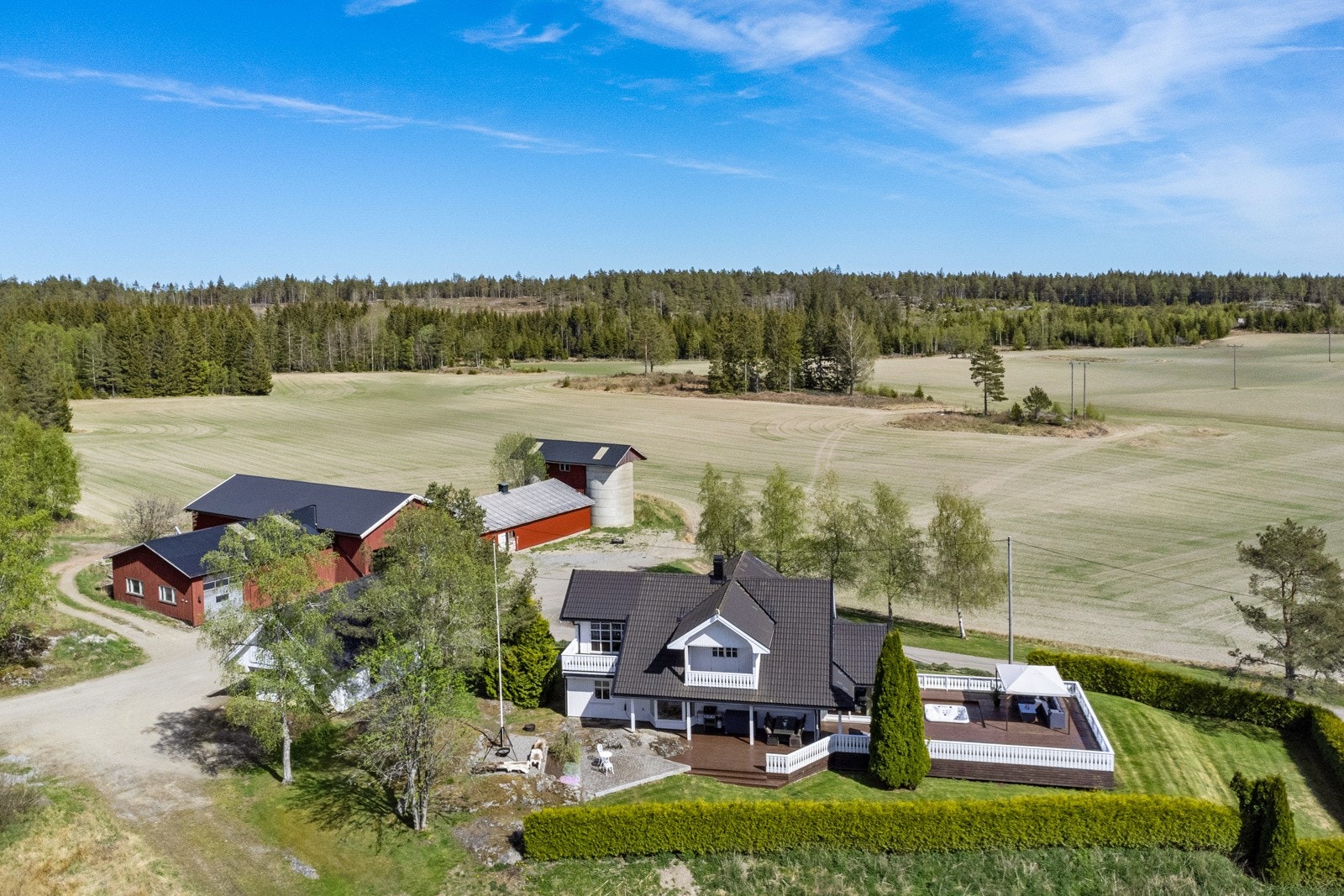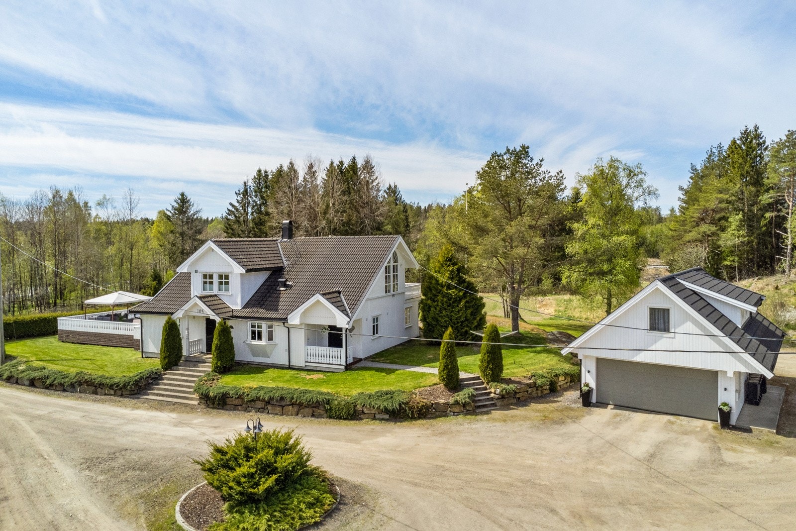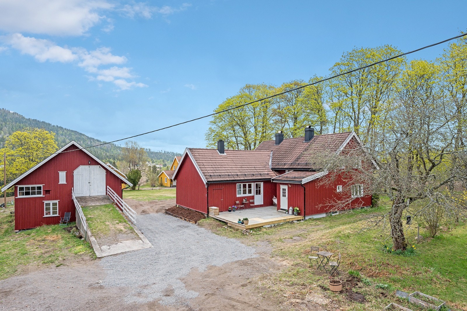 162,4 daa fulldyrket, 488,3 produktiv skog. Stort og fint våningshus, driftsbygning, dobbelgarasje