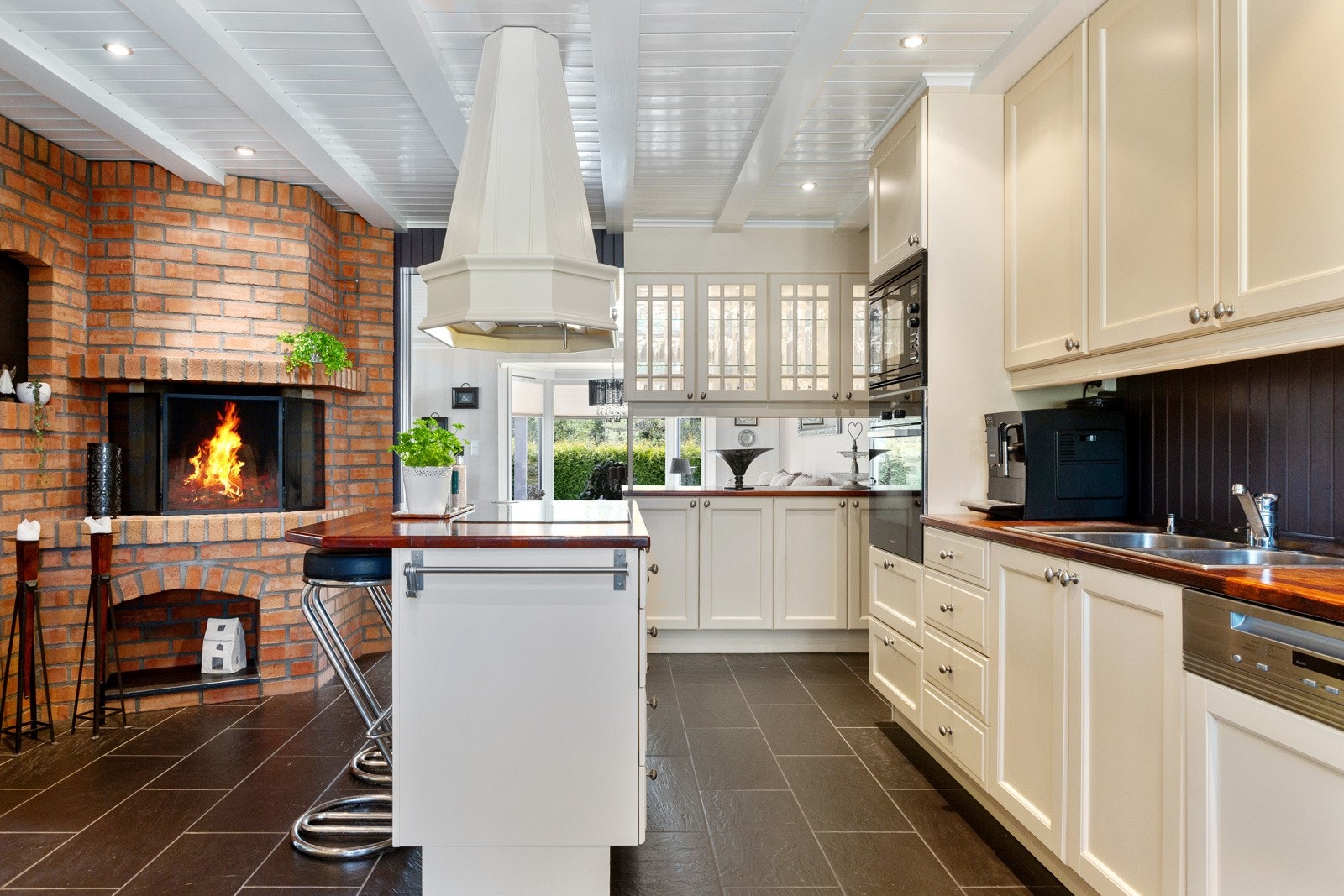 egen utgang til terrassen - stort og velutstyrt kjøkken med egen grue, fin arbeidsplass og god spiseplass