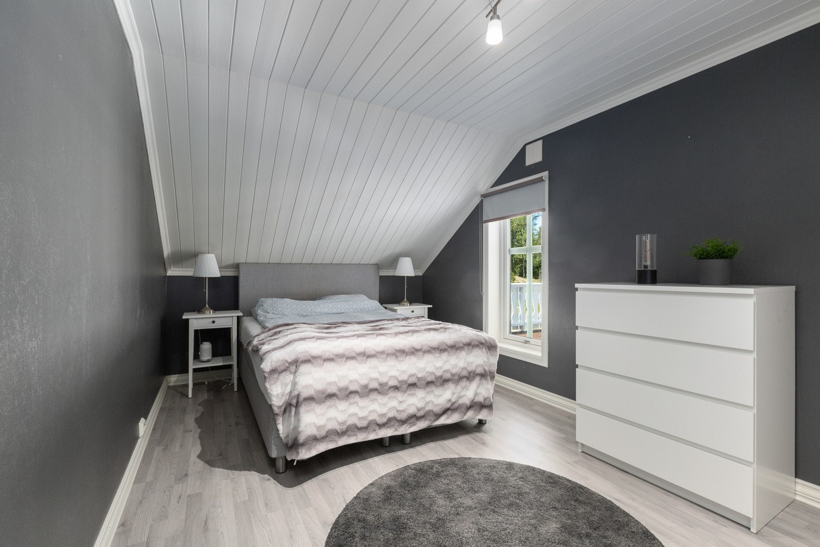 dusjnisje - stort soverom - koselig loftstue med utgang til egen luftebalkong.
