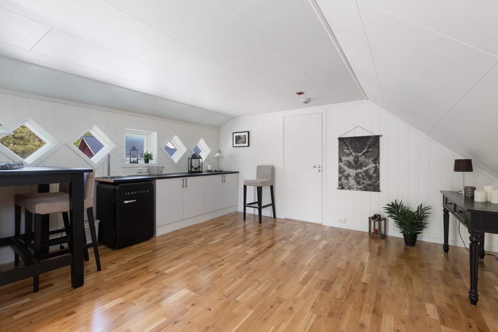 innredet hems med to rom. Hemsen har utvendig trappeadkomst.