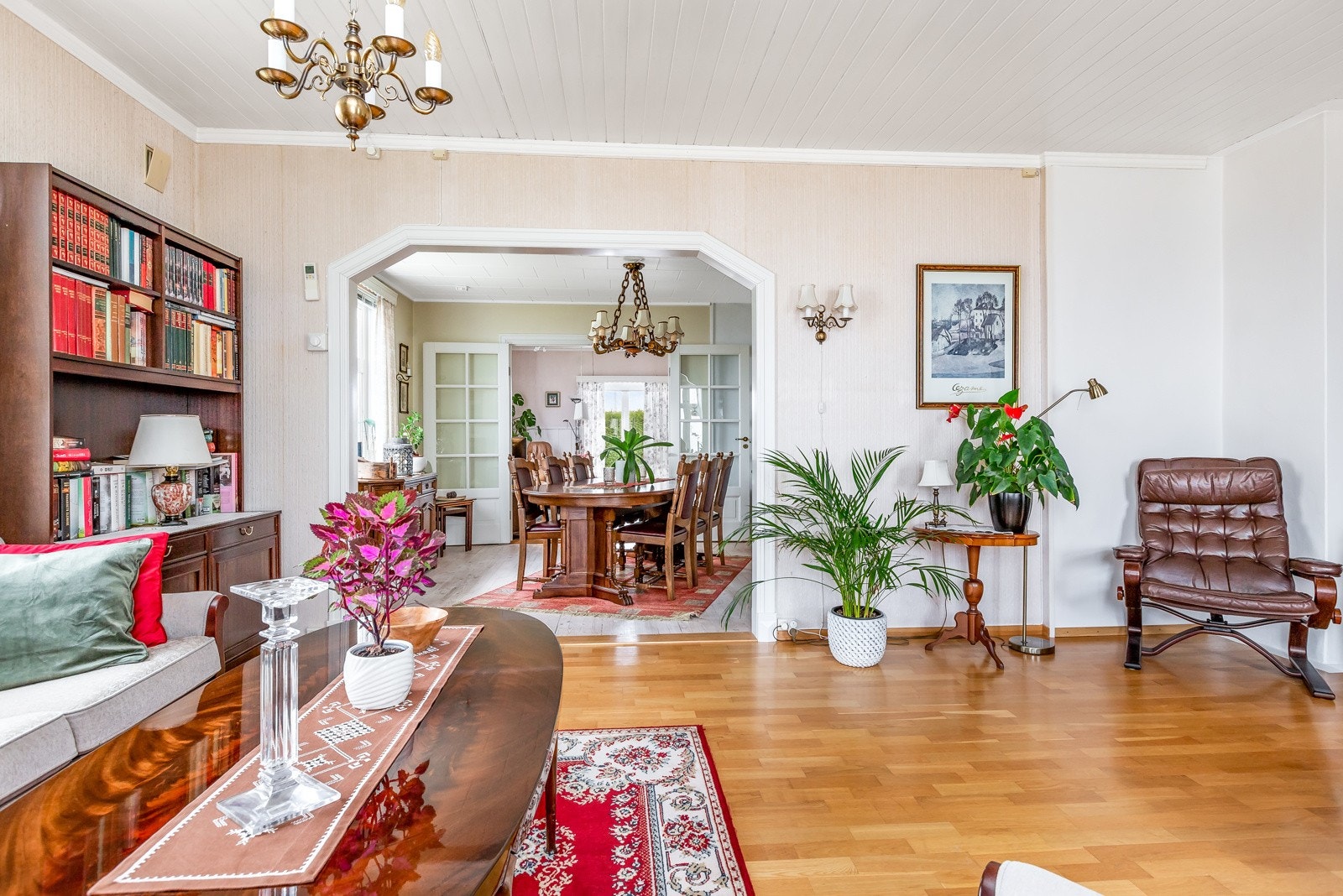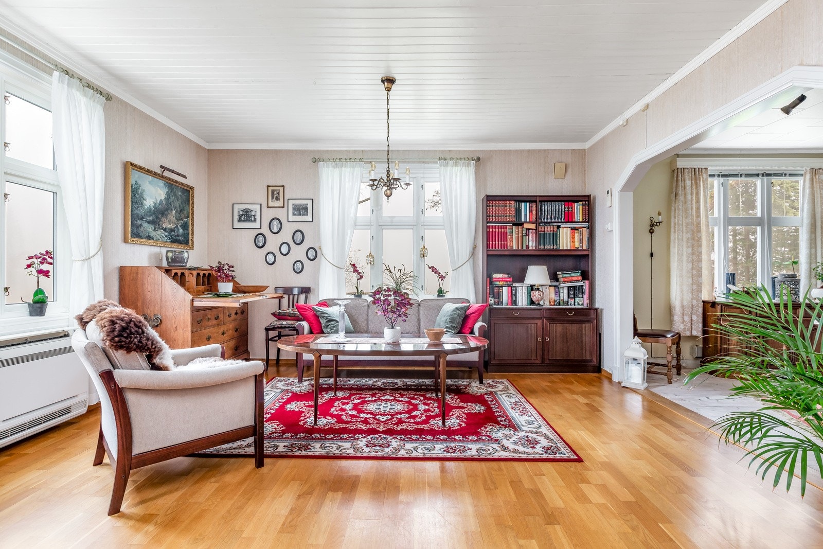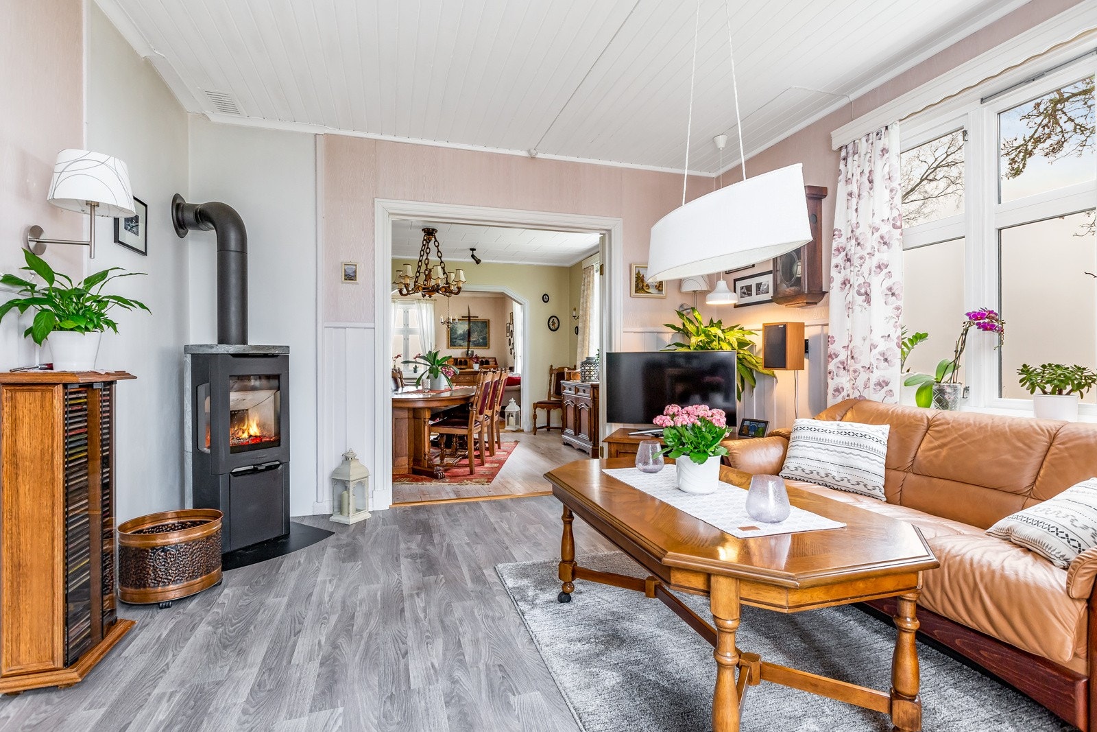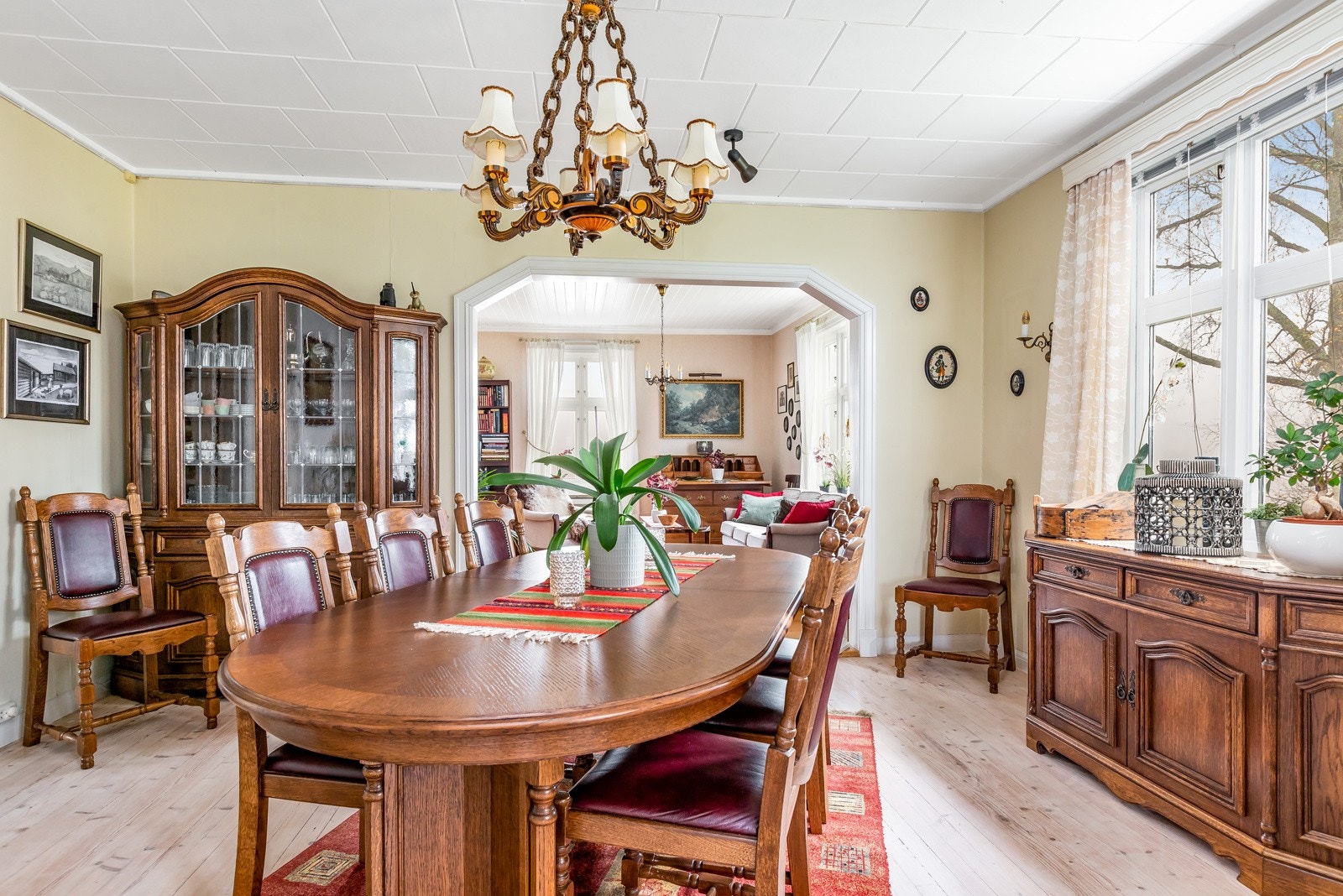 rentbrennende peisovn, egen utgang til terrasse og hage - spisestue - romslig salongstue.