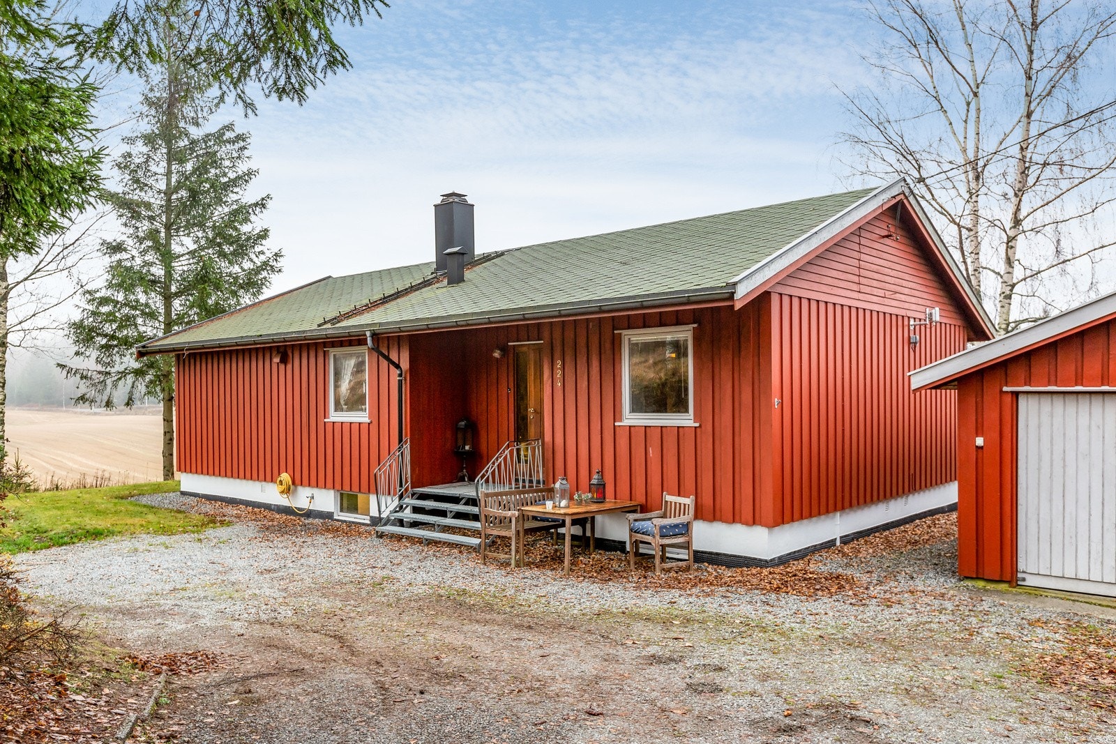 halv etasje med grunnflate på 43 kvm. Kårboligen på eiendommen, som ble oppført i 1975, ligger ca. 200