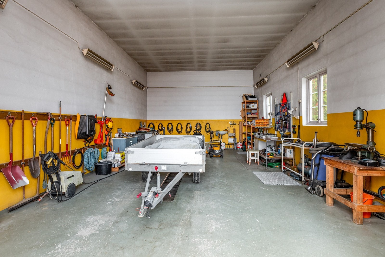 er 204 kvm. Inneholdende verksted på 64 kvm. og kaldtlager for maskiner og redskaper på 140 kvm.