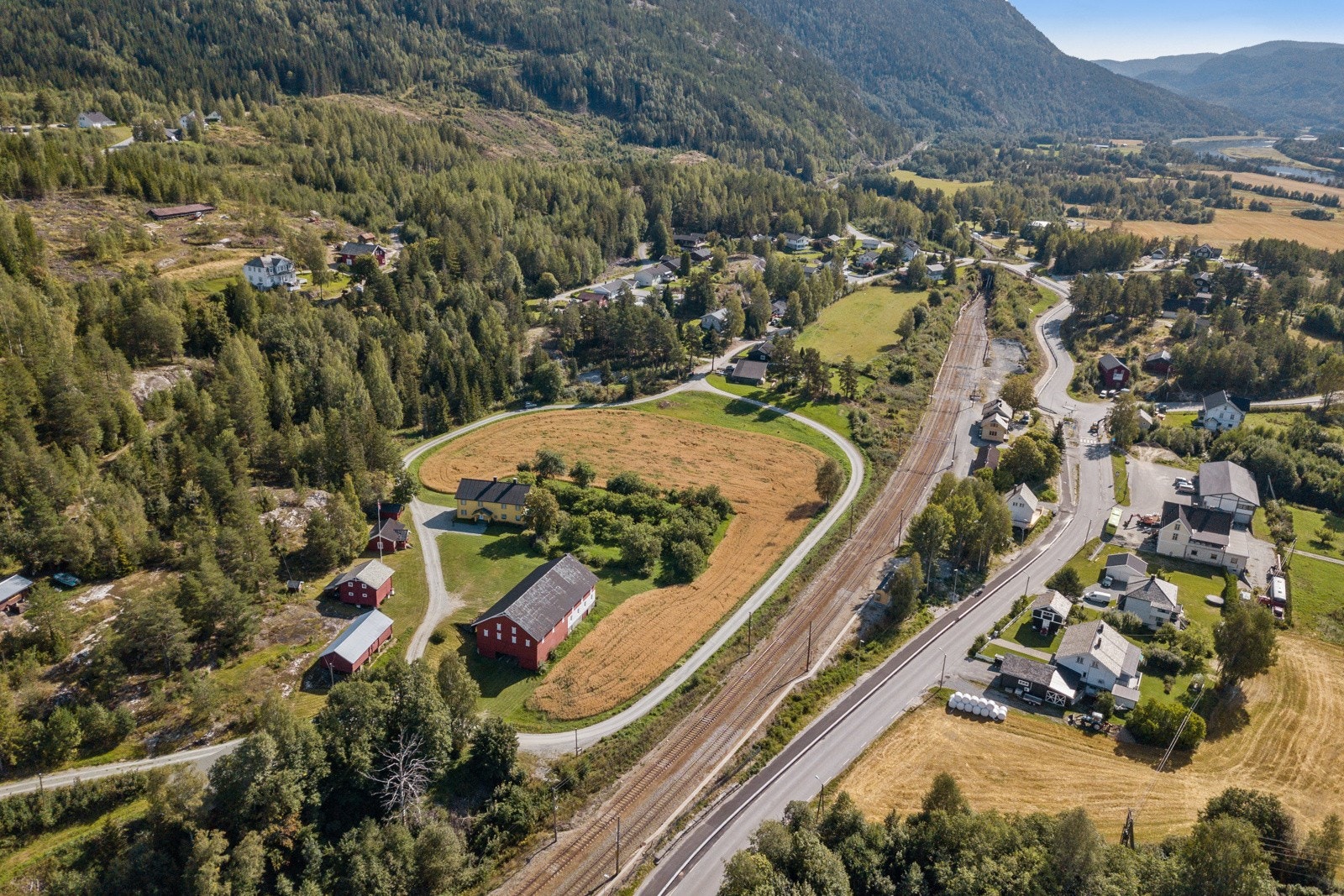 med god arrondering samt fem skogsteiger på til sammen 555,3 daa. Tunet ligger høyt og fint med det