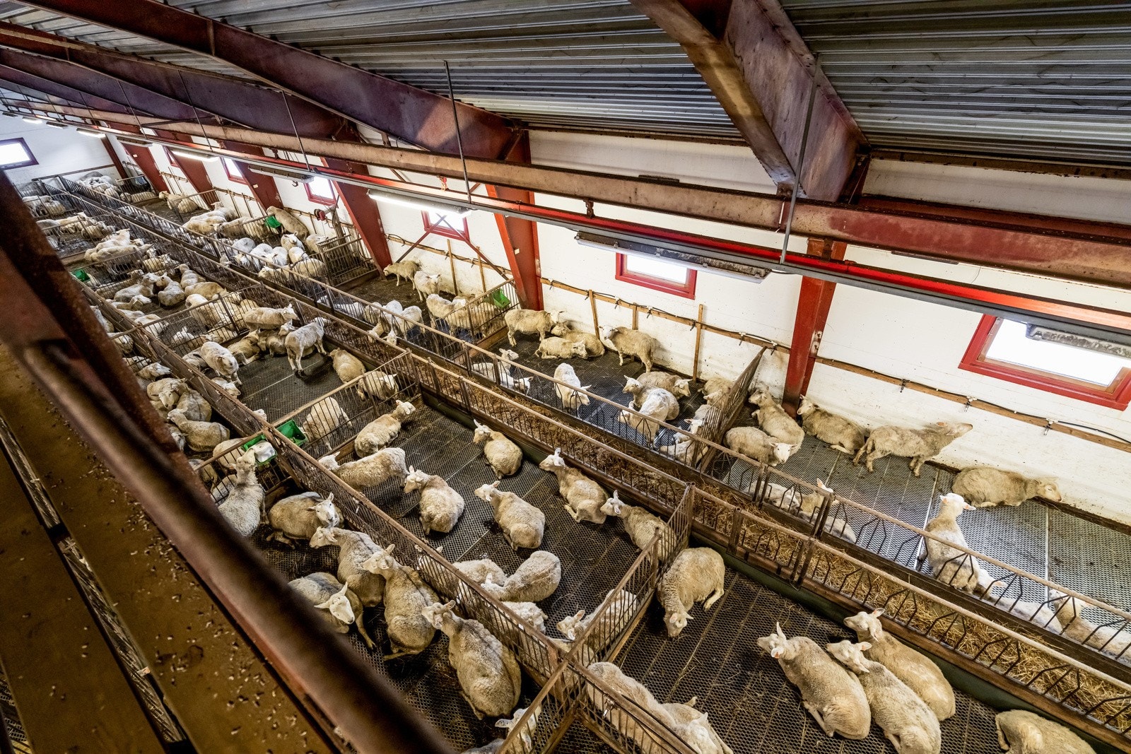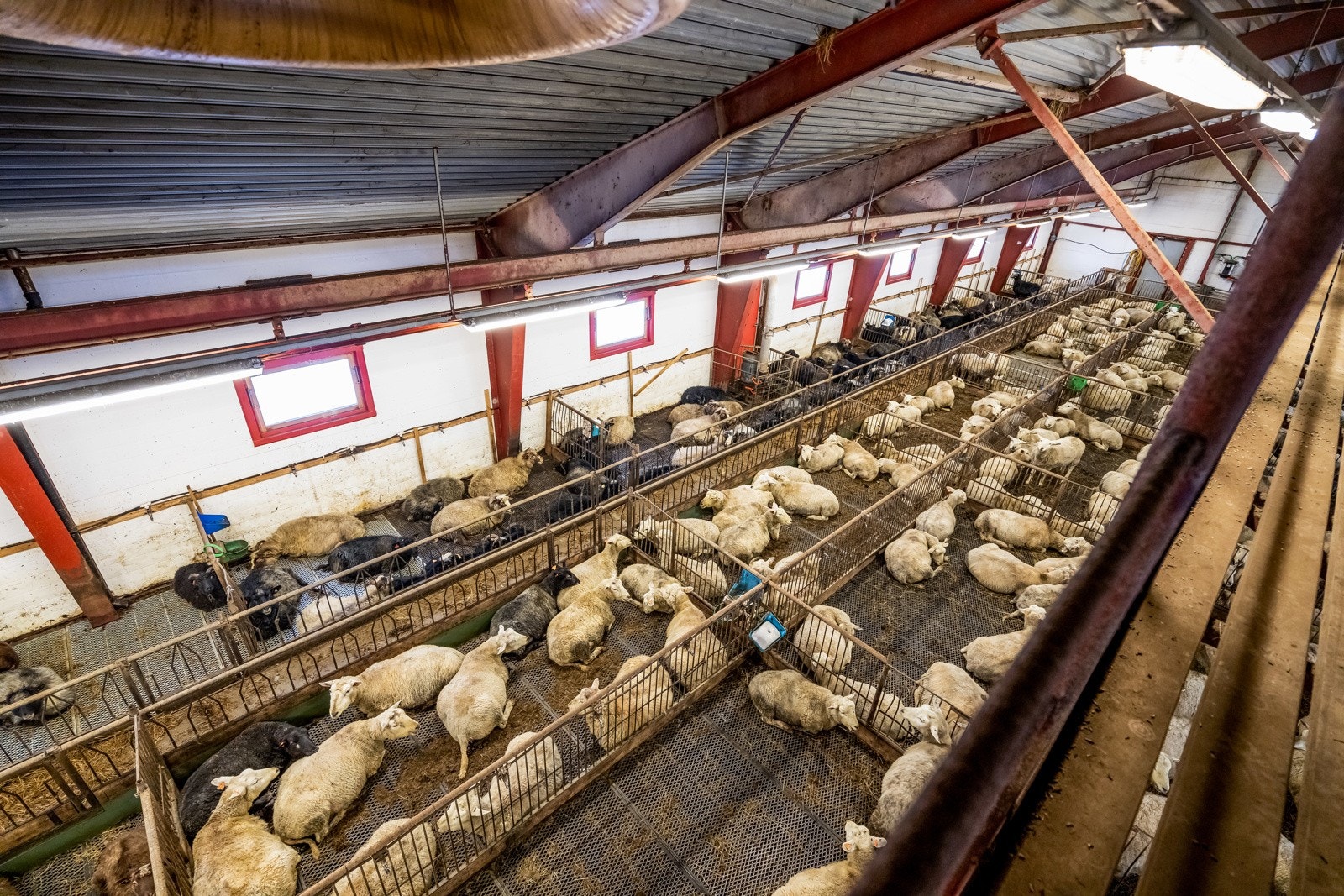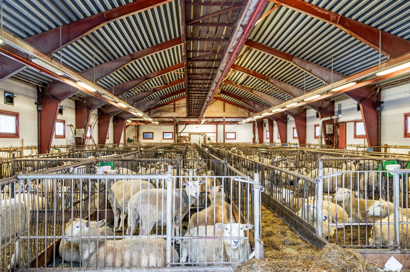 1.etg: Fjøs, samt egen avdeling for flaskelam. Det er totalt plass til 720 sau og lam. det er også innredet flott verksteddel
