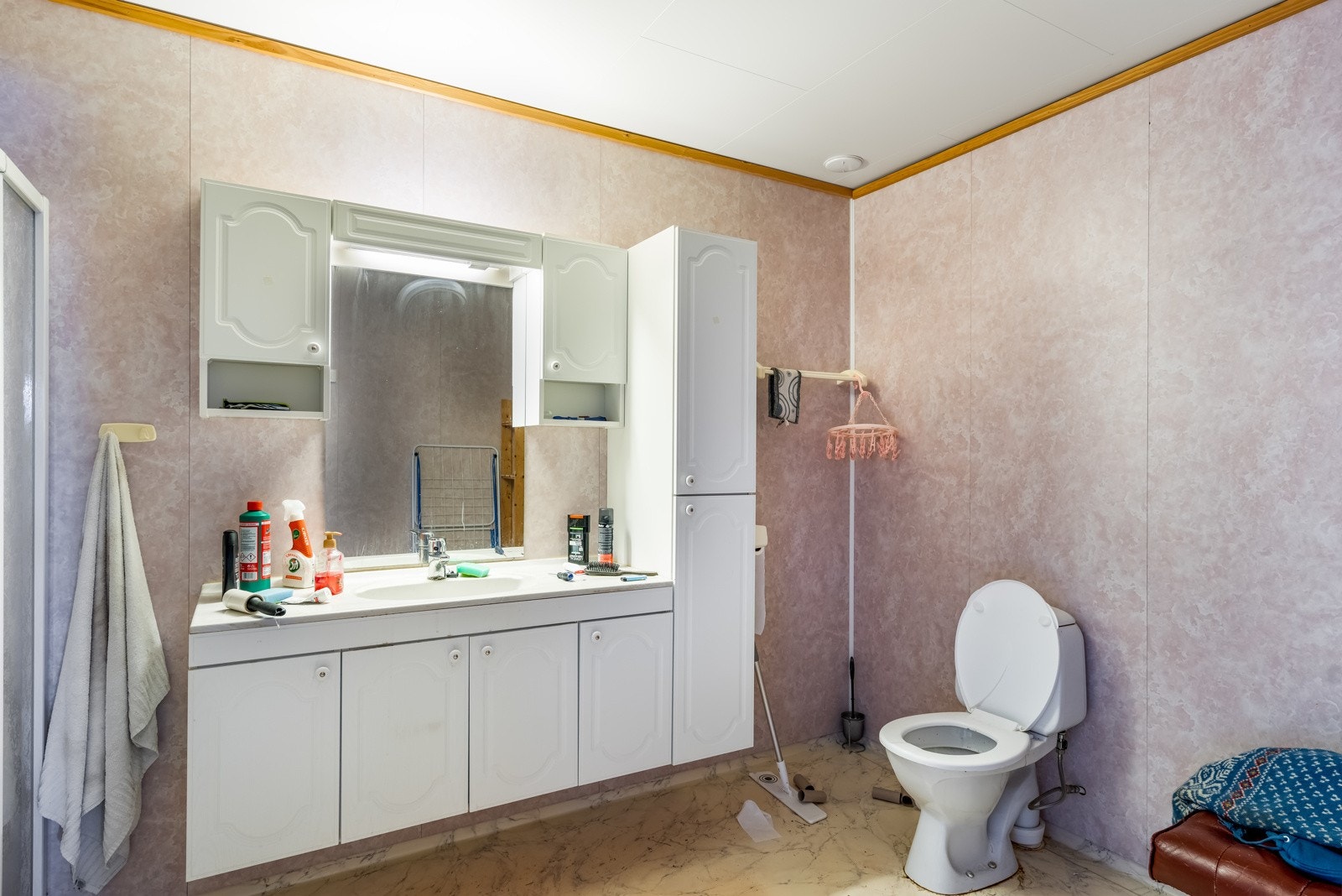 Bad/vaskerom i utleiedel: Klosett, servant med innredning og dusjkabinett. Uttak for vaskemaskin.
