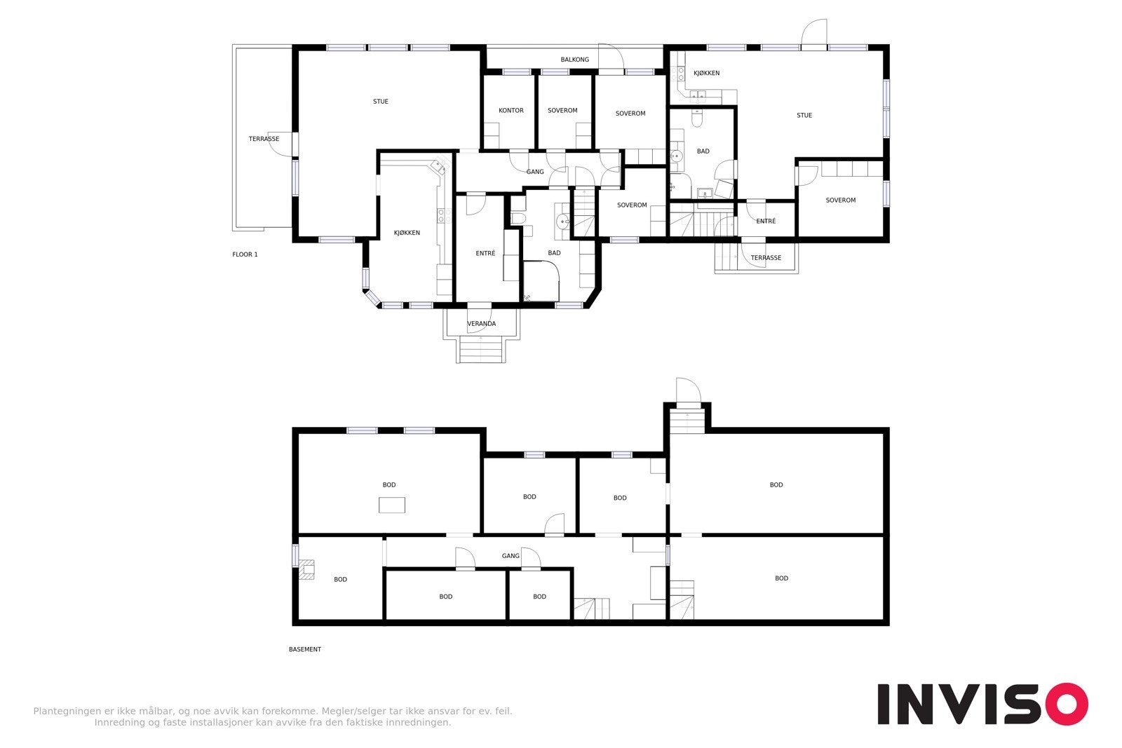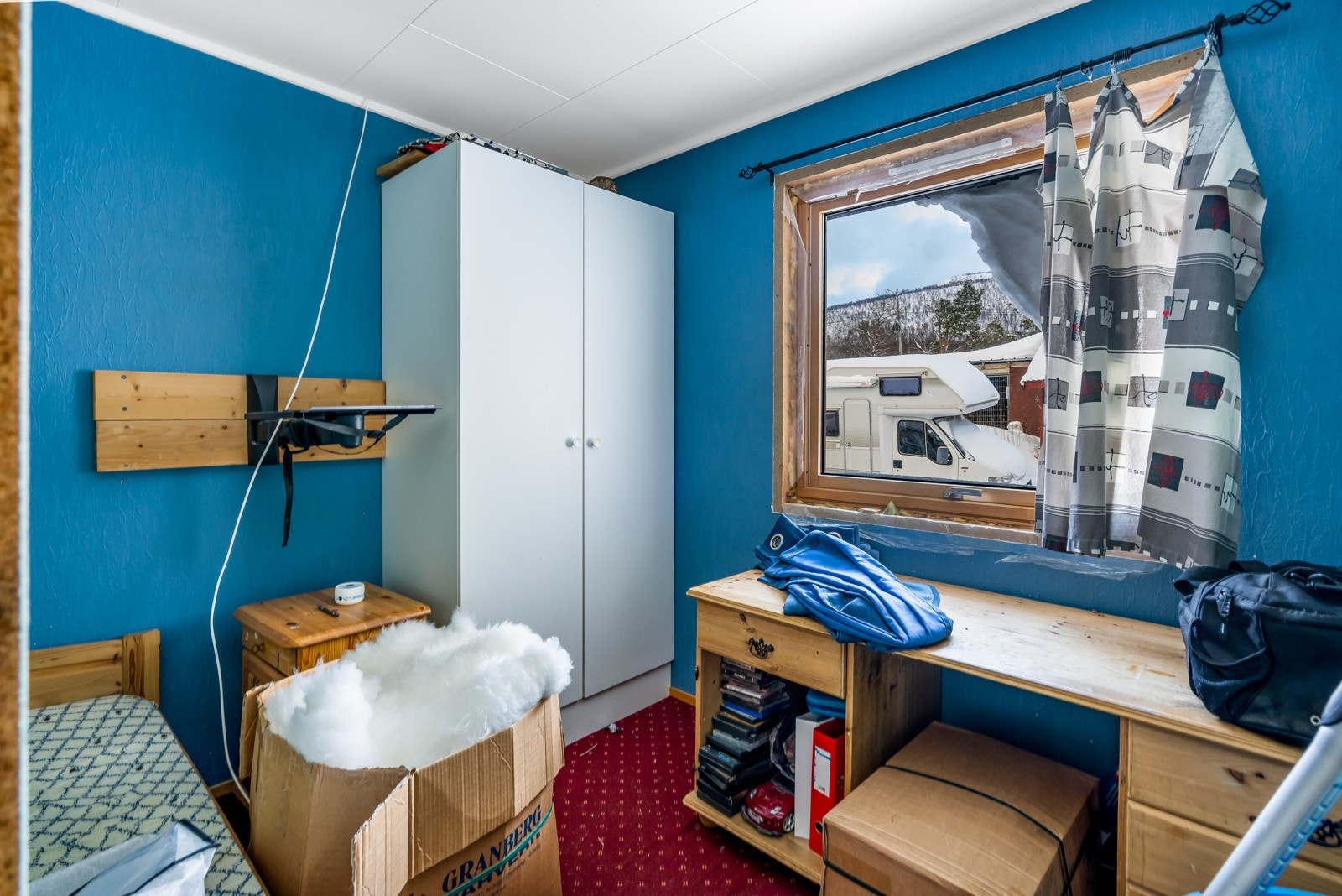 2.etg: Stue/møterom/kontor/kjøkken, 2 soverom, bad, wc-rom, garderobe og tekniske rom.
