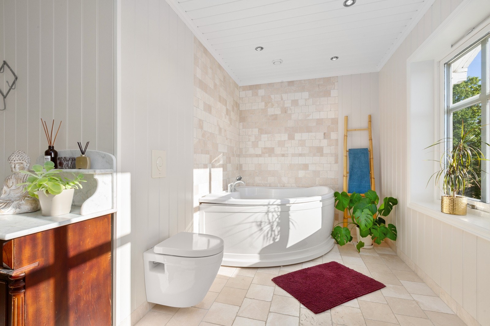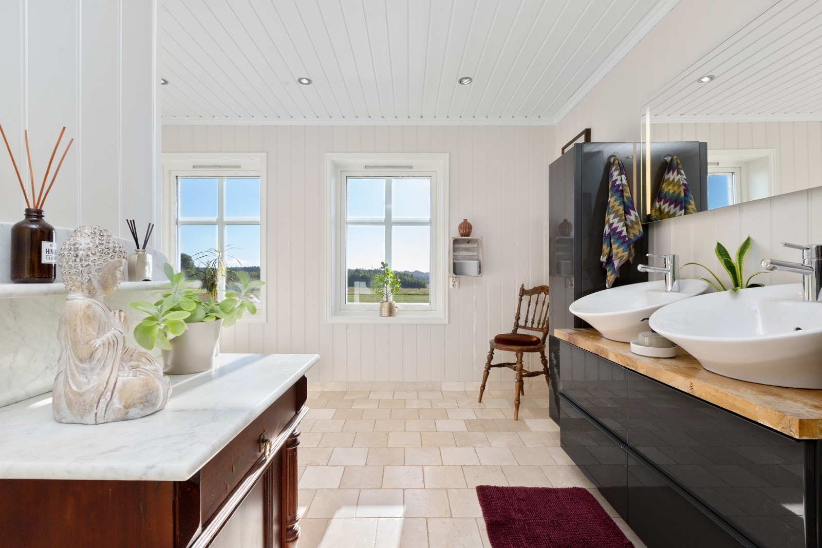 Våningshuset fikk i 2010 utført en større moderniserings- og renoveringsjobb, hvor blant annet hele bygningens 1. etasje og deler av 2. etasje ble innvendig totalrenovert. Bygningens opprinnelig byggeår er 1880 og den ble senere påbygd i 1971 med et tilbygg til vest. I husets 1. etasje har man et større kjøkkenrom med tidsriktig innredning og direkte adgang til spisestue. Et flott ildsted med gjennomsyn i form av en tunnelinnsats, binder kjøkken og spisestue sammen. Disse løsningene kombinert med originale tømmervegger i dagen skaper en lun og hyggelig atmosfære. Etasjens øvrige arealer består av hovedinngang med tilhørende hall i senter av bygningen, to romslige stuer i østre fløy, samt toalettrom, vaskerom, kjølerom og sekundærinngang i tilbygget fra 1971. I andre etasje er det fire soverom av god størrelse, og et hyggelig baderom med 2 servanter, badekar, wc og dusjhjørne. Hele første etasje og deler av andre etasje har energieffektiv vannbåren gulvvarme fra bergvarmepumpe.
