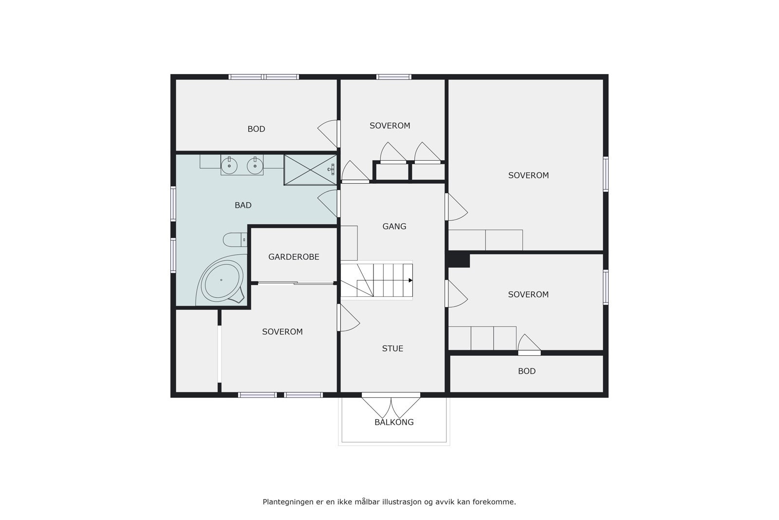 2. etasje primærrom: Fire soverom, bad og gangareal.