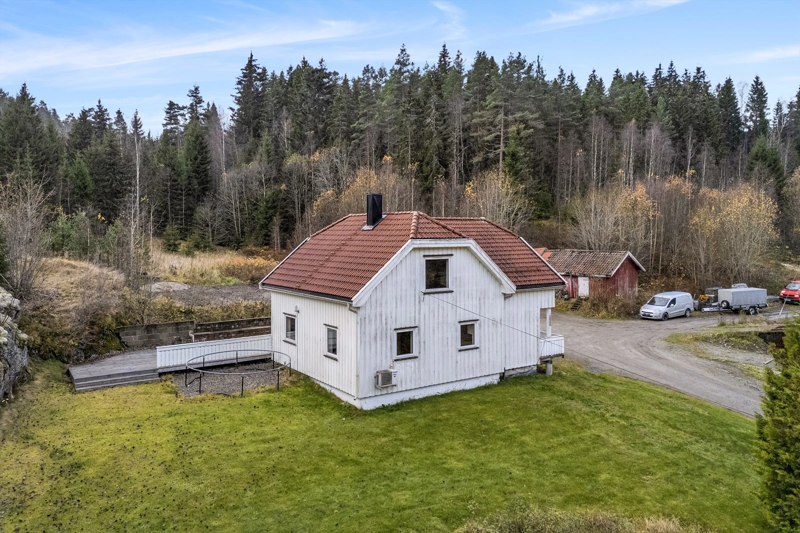 Småbruket "Myra"på 85 daa med flott beliggenhet. 12,6 daa dyrket mark og 64,8 daa produktiv skog. Enebolig, låve/bod