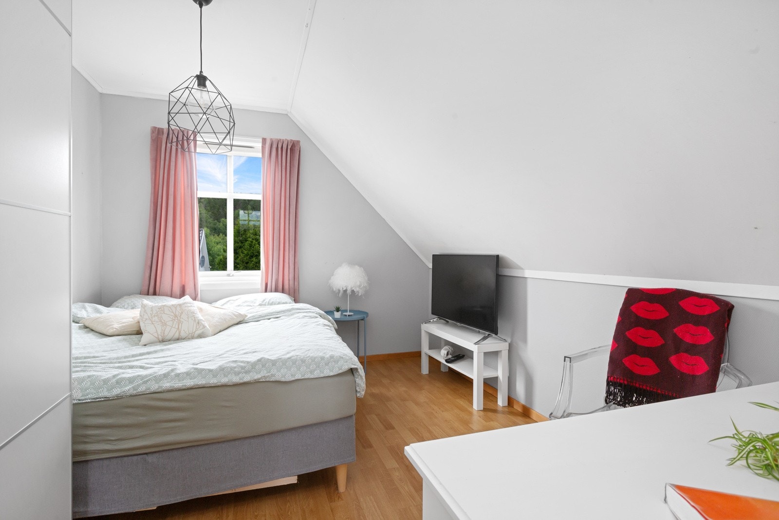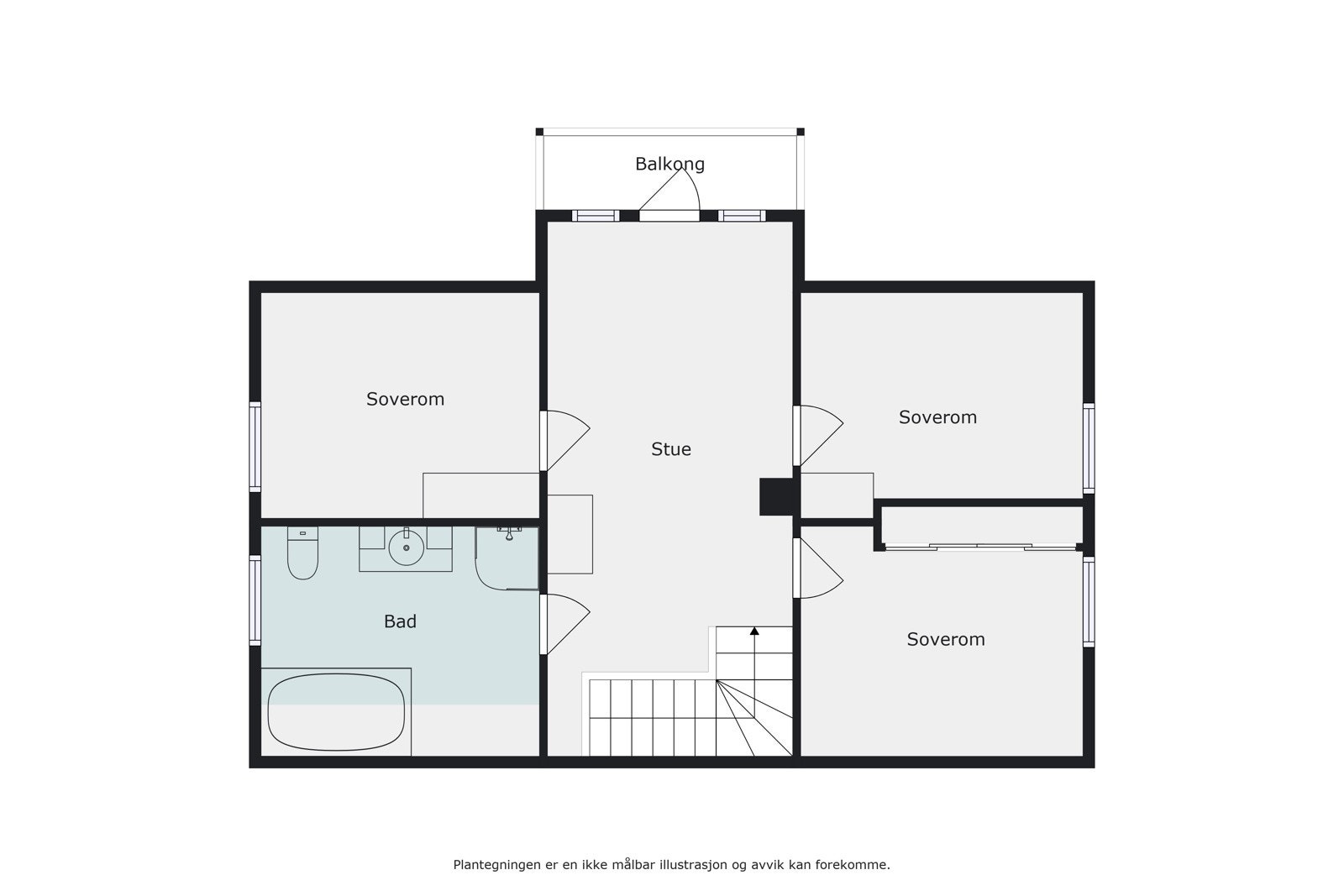 2. etg.: Loftstue m/utg. til balkong, 3 soverom og bad m/ dusjhjørne, boblebadekar og wc