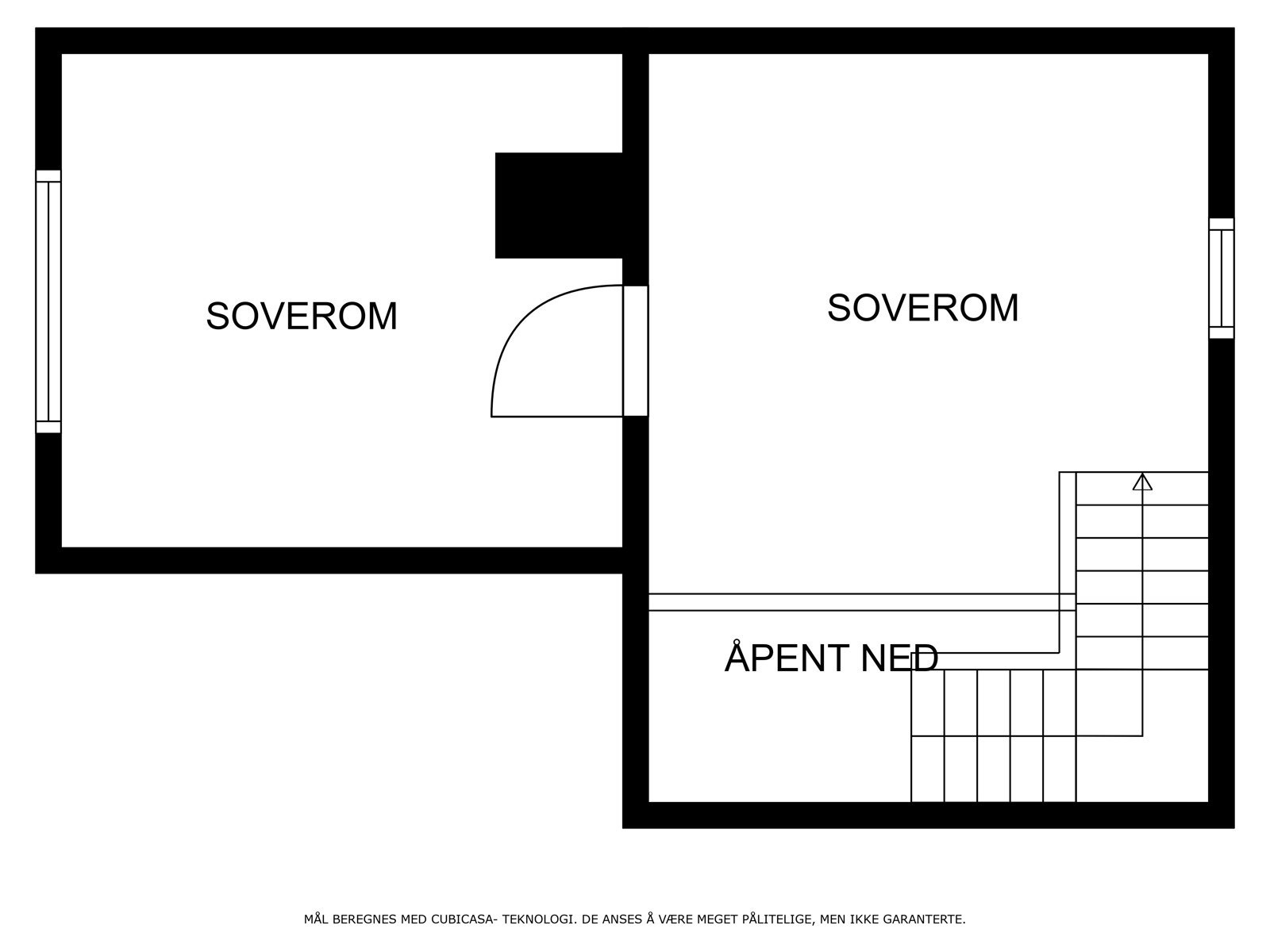 – Ikke godkjent med innredet rom/boligareal i 2.etasje på bygning.