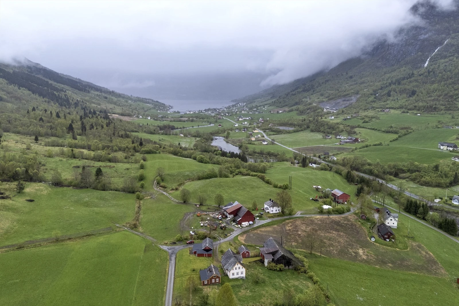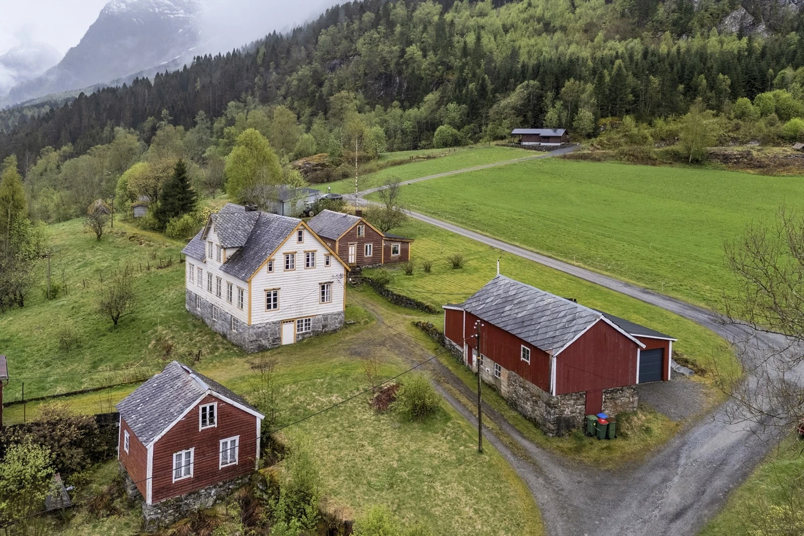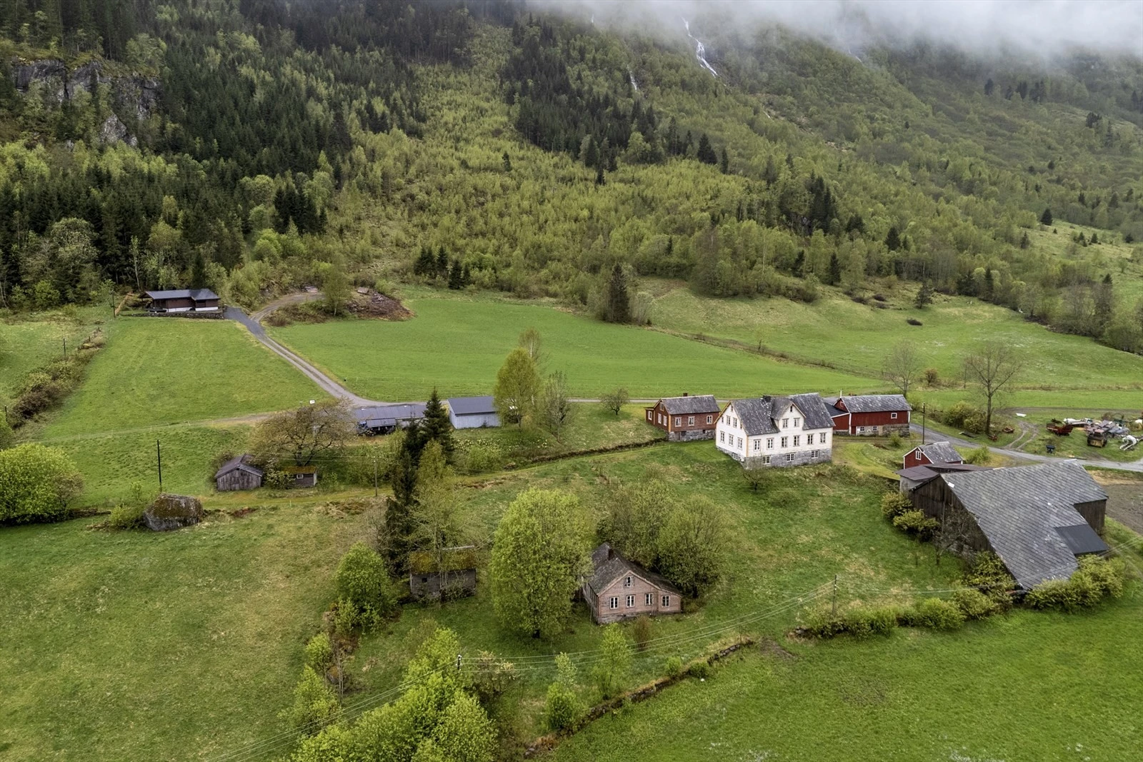Idyllisk beliggenhet, stor bygningsmasse og naturgitte verdier. 69 daa. dyrket mark og 476 daa. skog