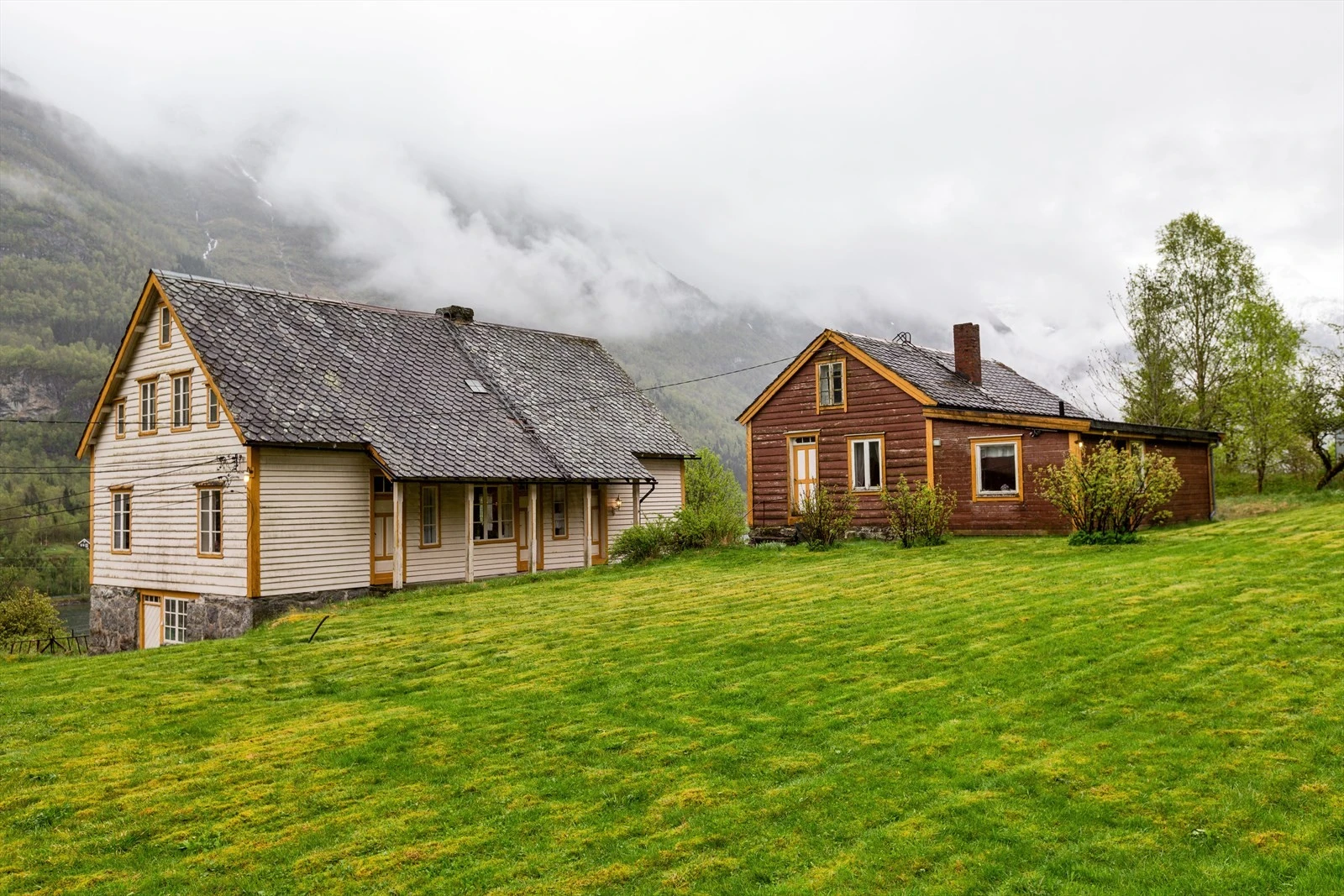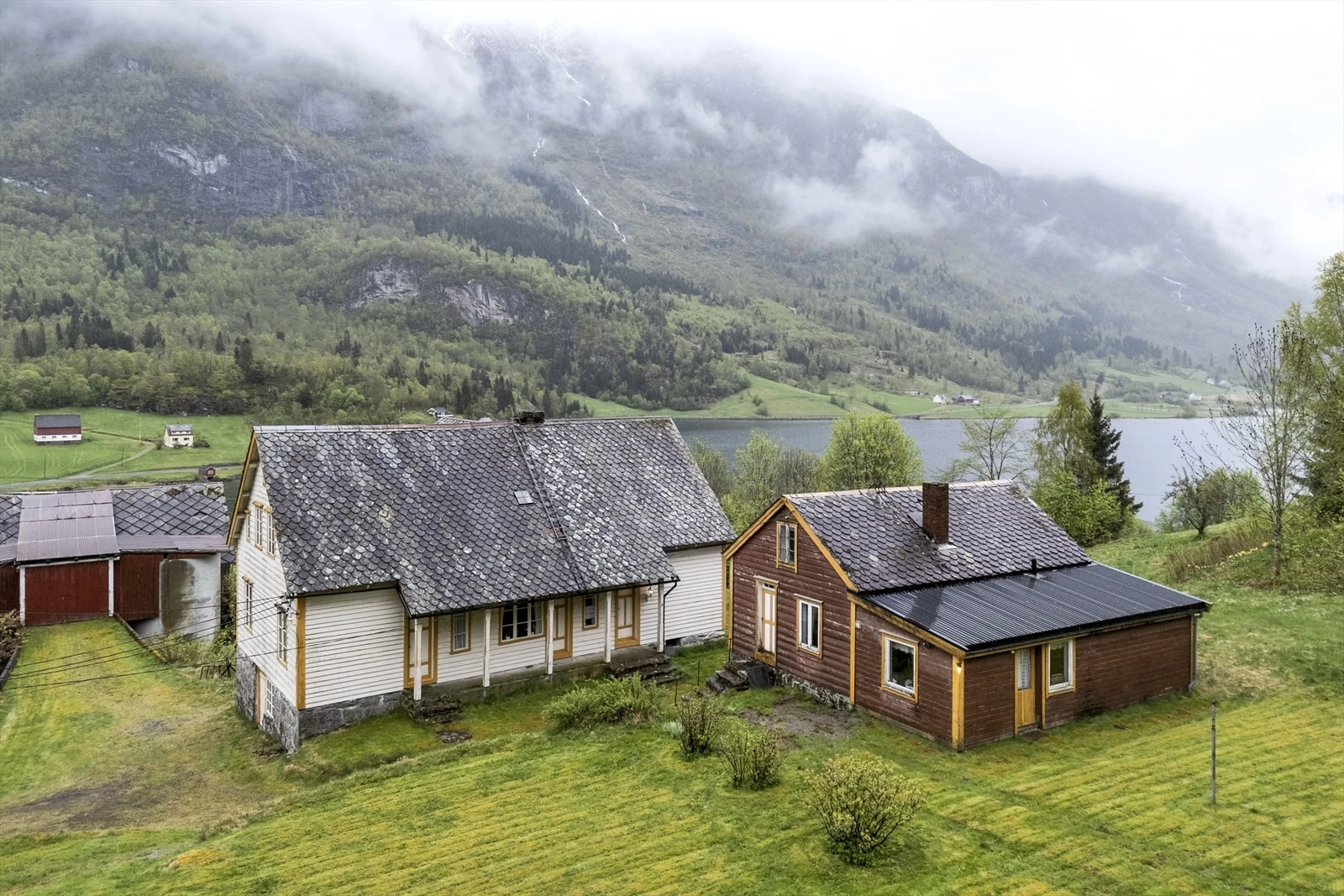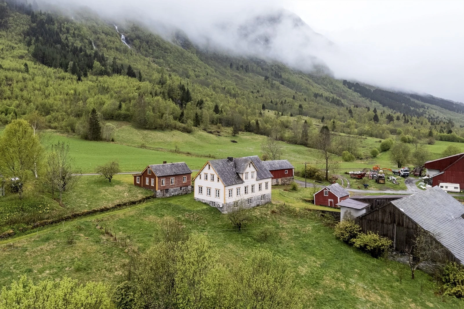 Idyllisk beliggenhet, stor bygningsmasse og naturgitte verdier. 69 daa. dyrket mark og 476 daa. skog