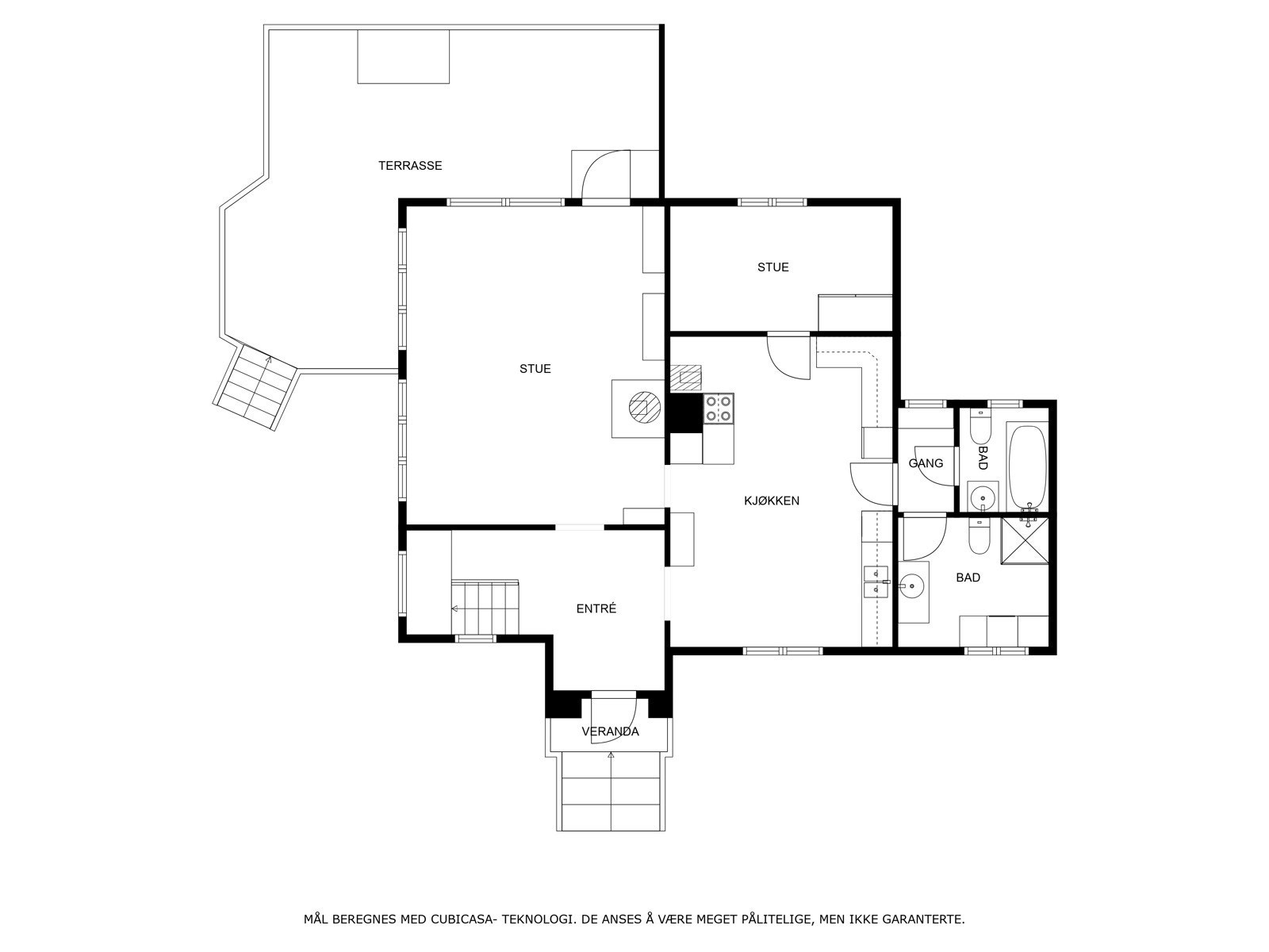 Målt høydeforskjell på over 15 mm gjennom hele rommet. Tilstandsgrad 2 gis med bakgrunn i standardens krav til godkjente måleavvik. Målt høydeforskjell på mellom 10 – 20 mm innenfor en lengde på 2 meter. Tilstandsgrad 2 gis med bakgrunn i standardens krav til godkjente måleavvik. Høy fukt er registrert i svill under bjelkelag i kjeller. Spor etter stripet borebille. Målt 14 mm. høydeforskjell innenfor 2 m. med linjelaser ut i fra en høyde på 45 mm. på kjøkken. Målt 22 mm. høydeforskjell gjennom rommet med linjelaser ut i fra en høyde på 45 mm. på kjøkken.