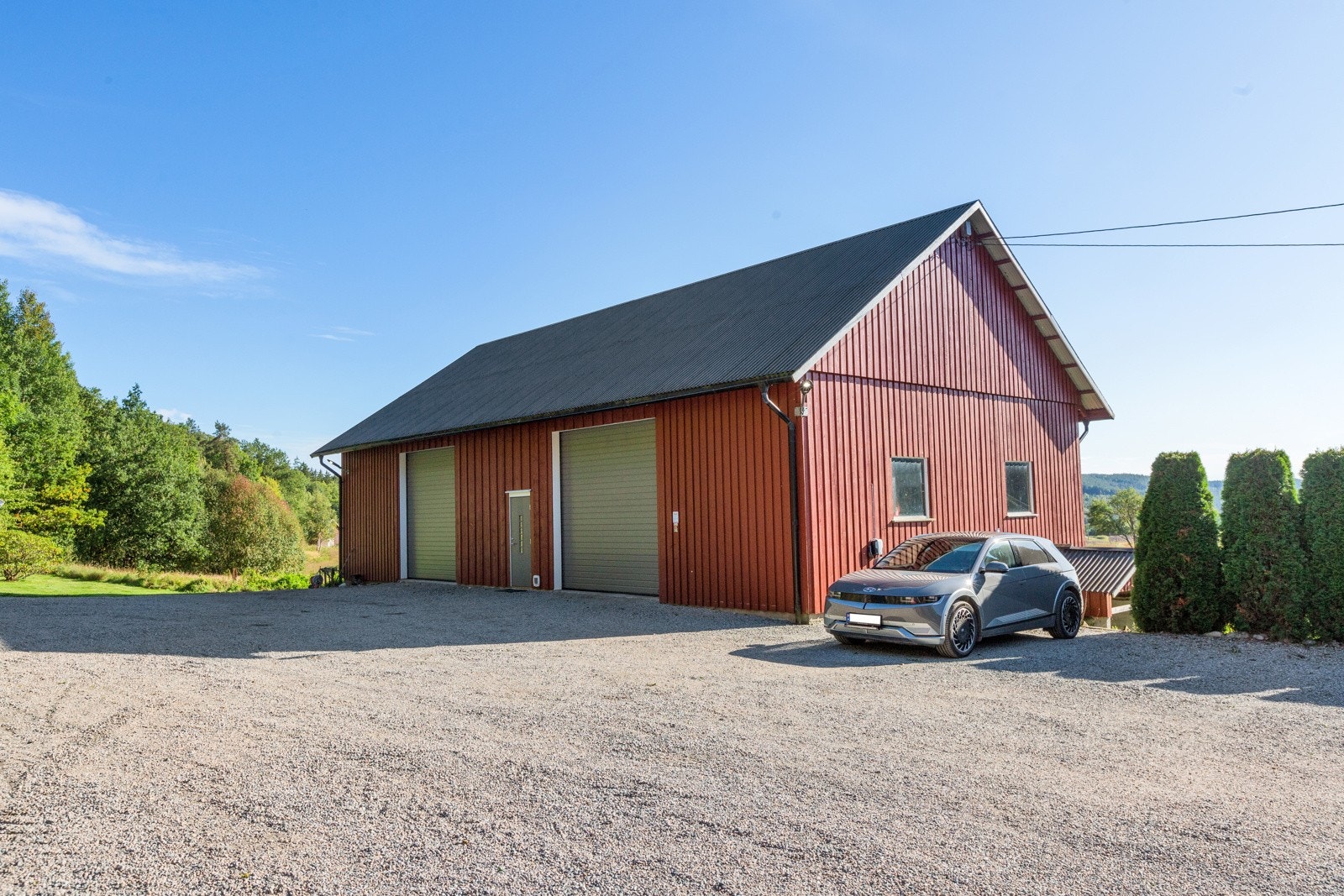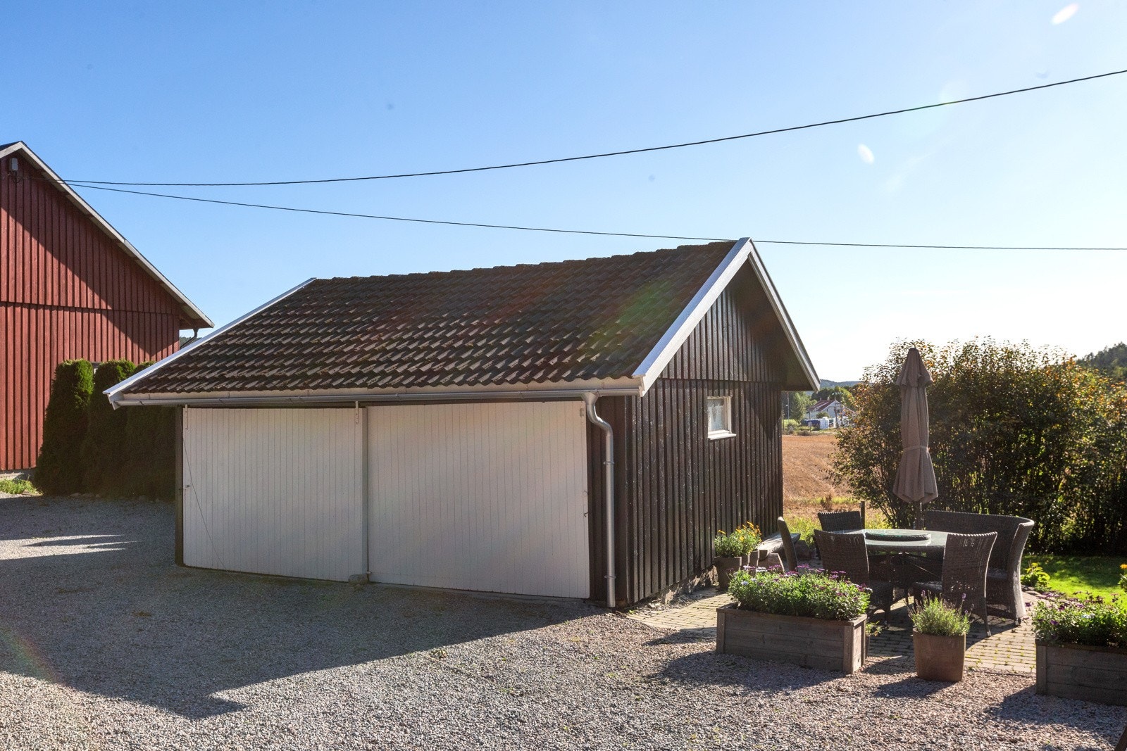 Tilhørende våningshuset er det også satt opp en frittstående garasje med to biloppstillingsplasser i 1990.