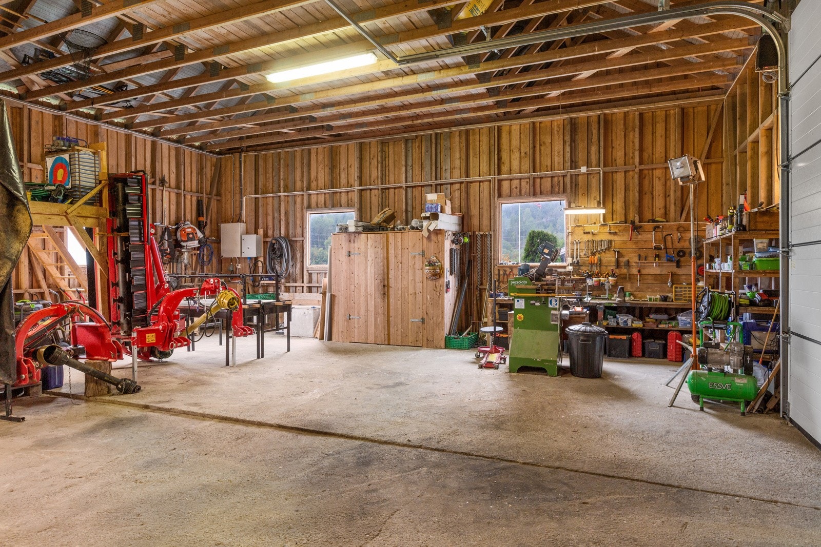 Redskapshuset på eiendommen er oppført i 1985 og er det største bygget på eiendommen med sine 190 kvm grunnflate. Bygget er stolpefritt med støpte gulv i og selvbærende takstoler. Det er installert to leddheiseporter mot tunet med store lysåpninger. I byggets østre del sto det tidligere en utdatert korntørke som nå er erstattet med isolerte lagerarealer, hobbyrom og trimrom på hems. Bygningens maskinlager i vestre fløy er svært rasjonell med enkel adkomst, støpt dekke, god takhøyde og bra belysning. Det er også en potetkjeller/lager under bygget på 43 kvm.