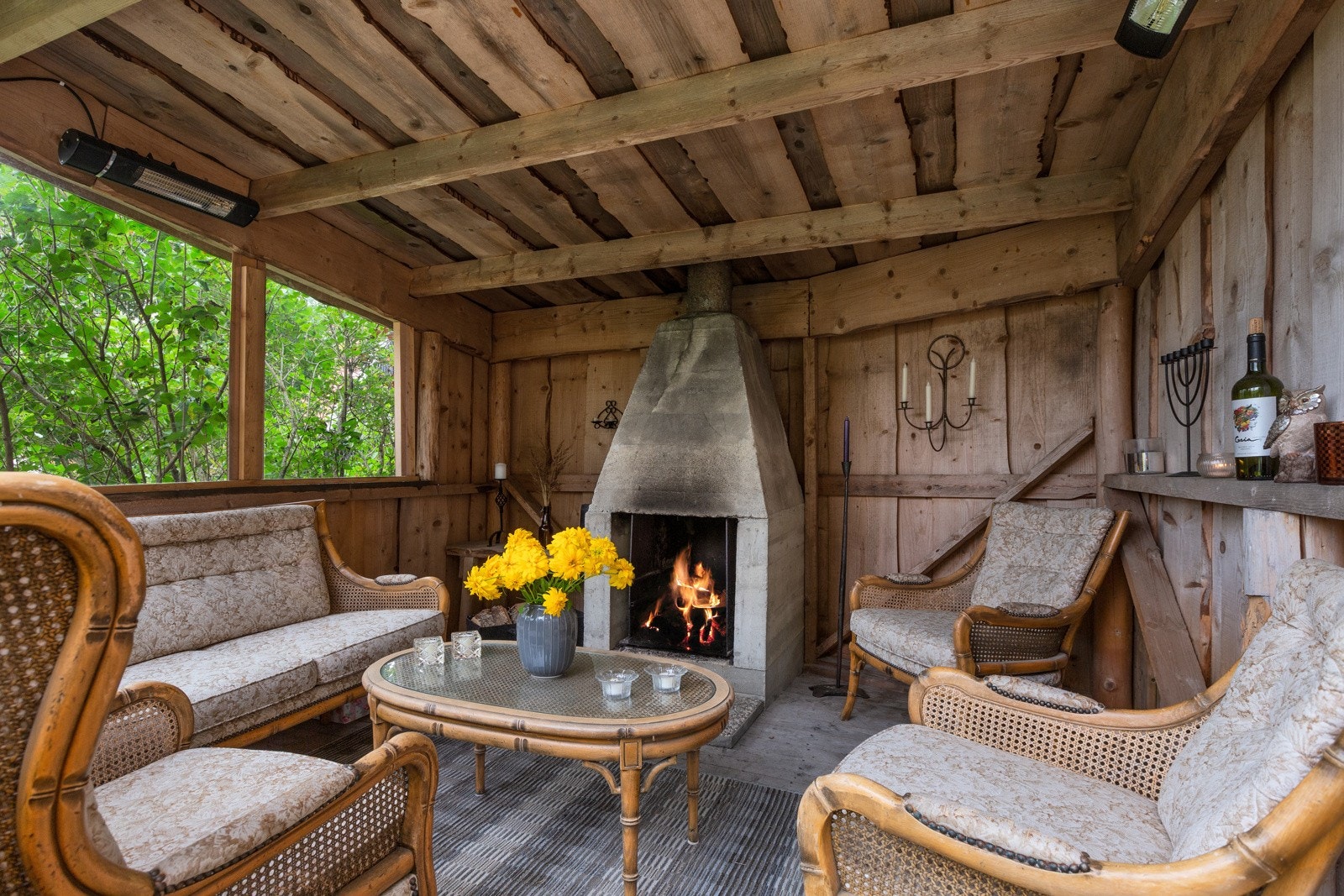 Traktorgarasje og vedskjul: