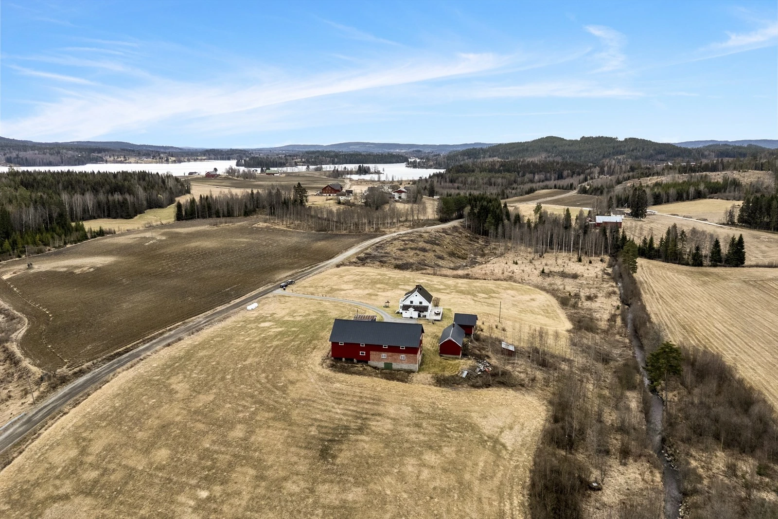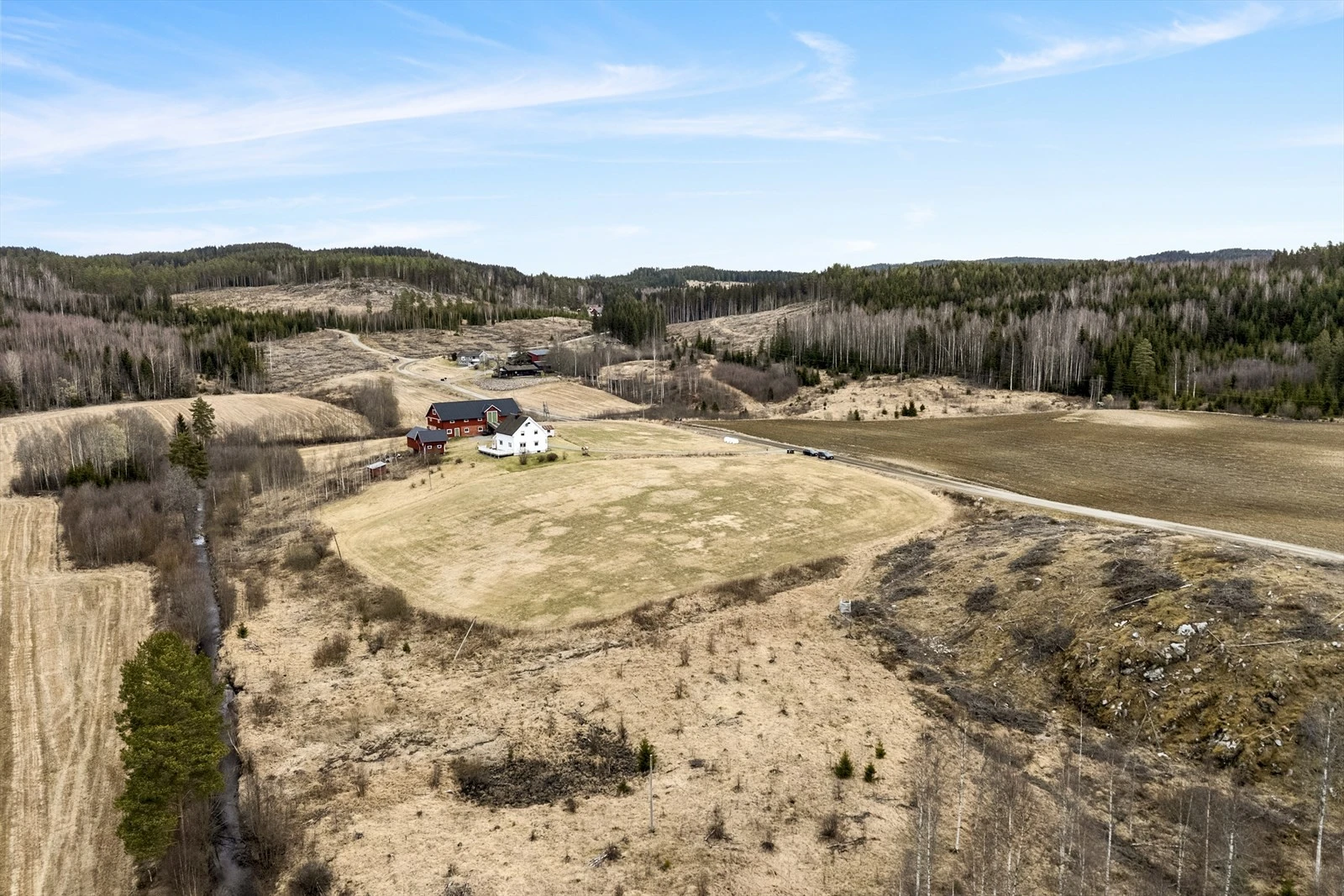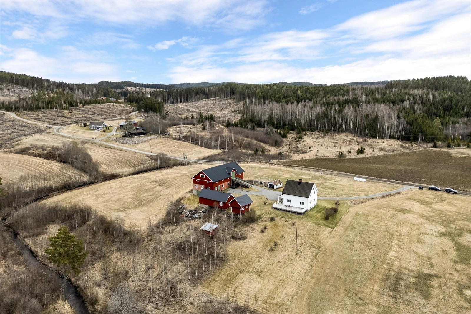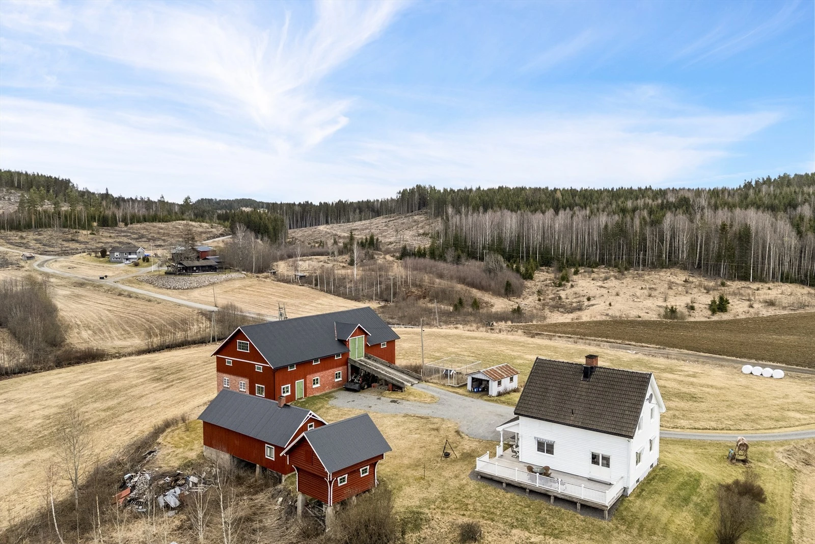 Landbrukseiendom på ca. 188 daa med flott beliggenhet | Våningshus og 4 øvrige bygg | 51,1 daa fulldyrka jord