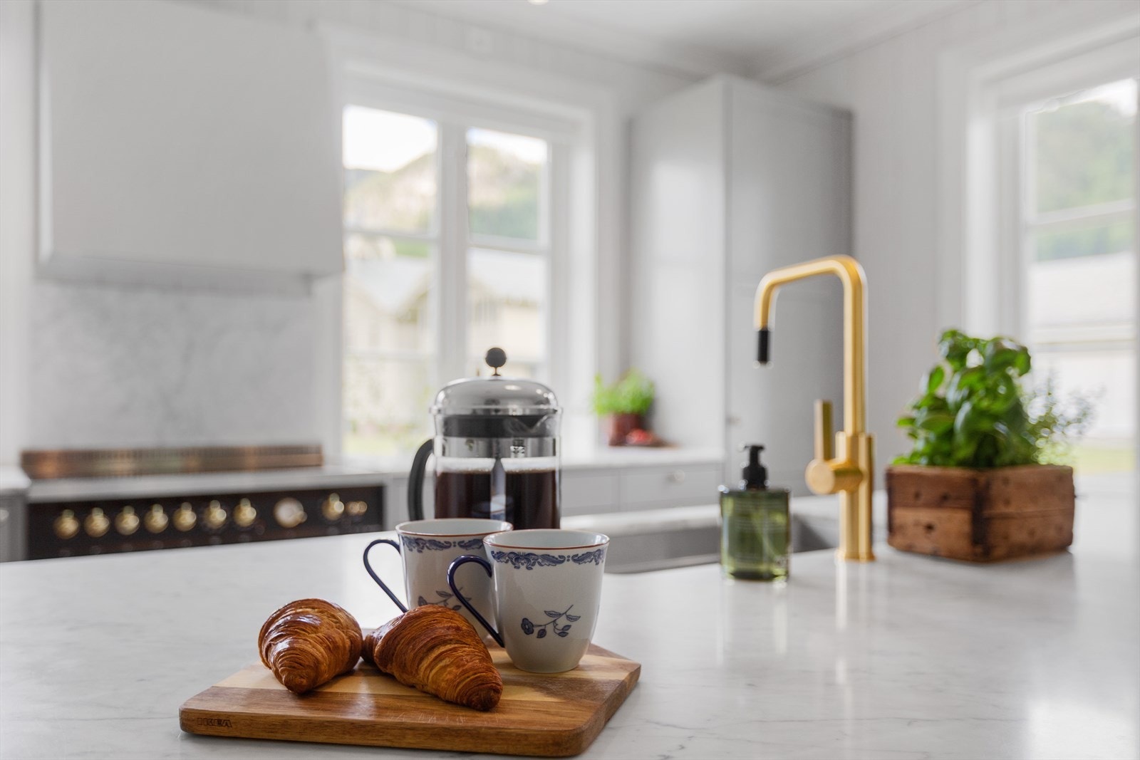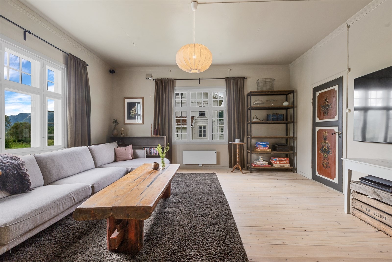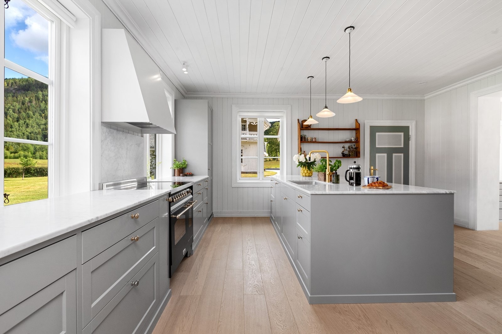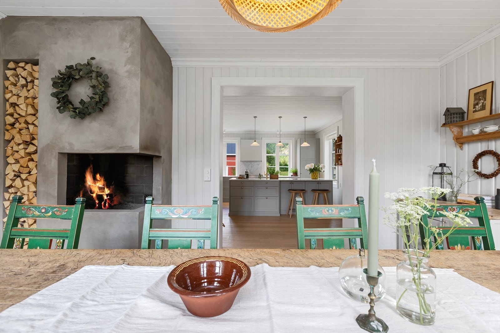 1. etasje (123 kvm.): Entre, bad, kjøkken, stue, entre, hallingsstue og bryggerhus.