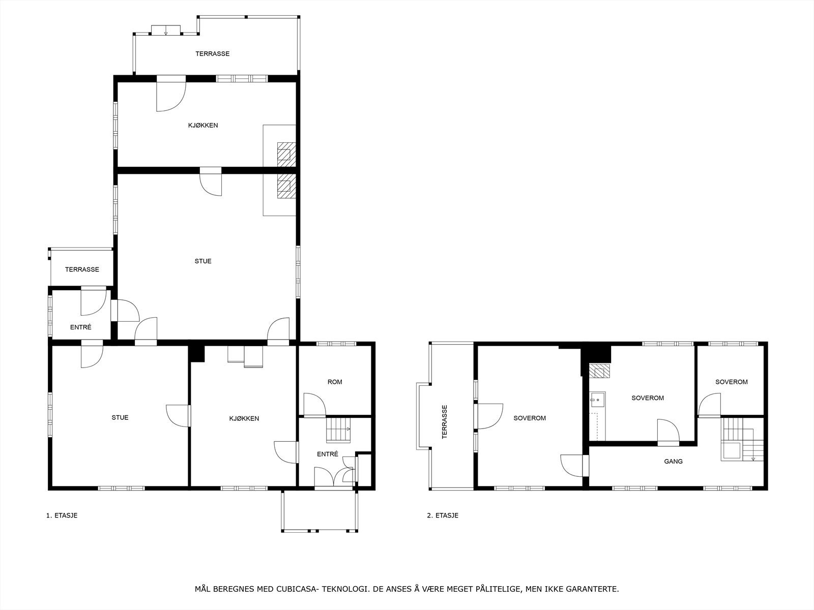 2. etasje (165 kvm.): Trapperom, bad-/vaskerom, bad, tørkerom, fordelingsgang, og 6 soverom.