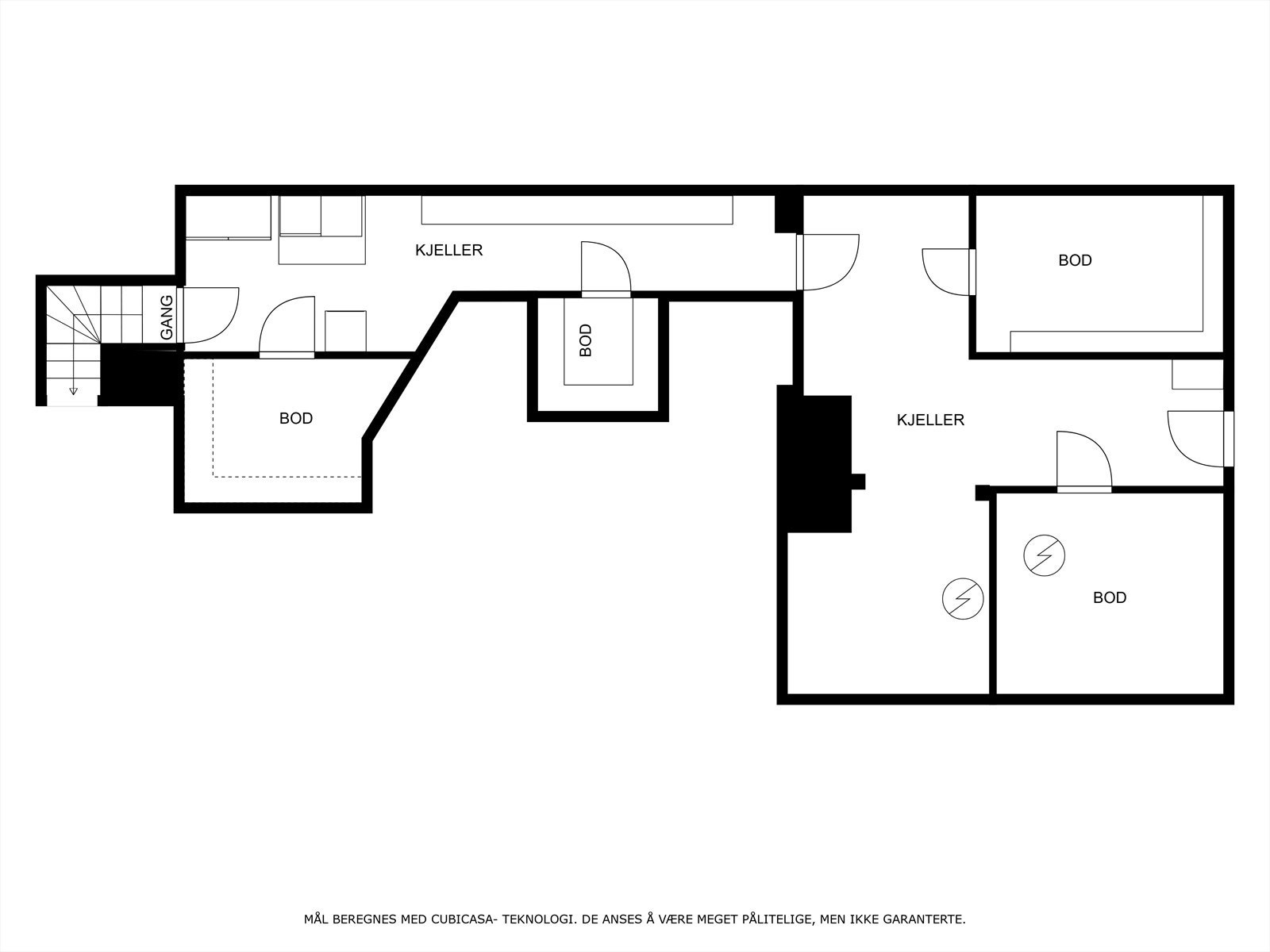 Kjeller (53 kvm.): Gang, matbod, velvrom, 2 tekniske rom og potetkjeller.