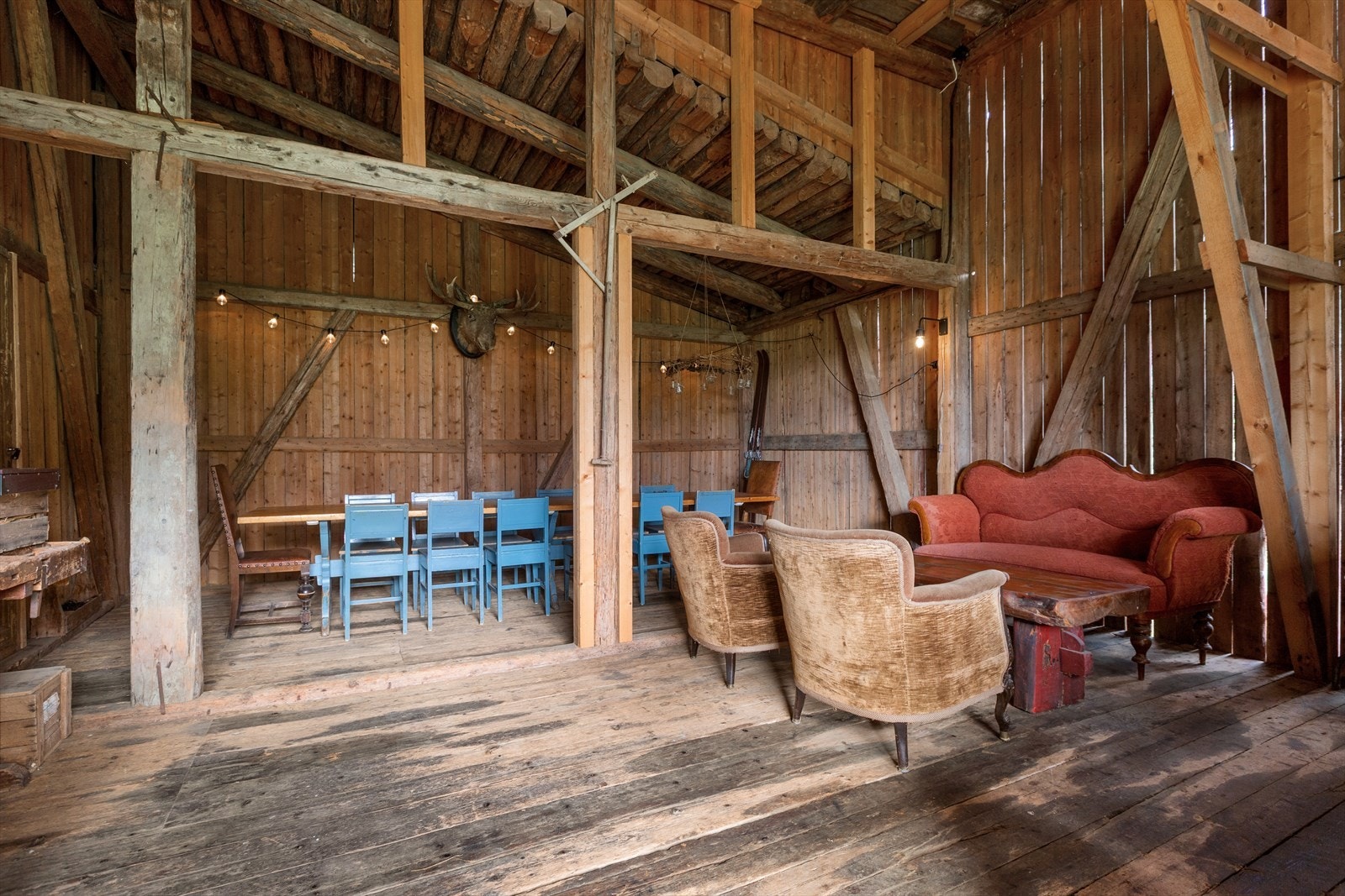 1. etasje (621 kvm.): Lagerrom, høylåve, isolert lagerrom og gammelt fjøs.