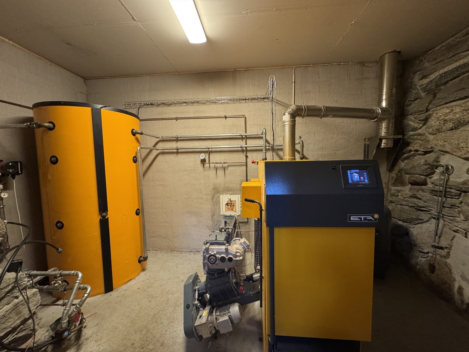 Fjernvarmeanlegg med flisfyring oppført 2015. Dette er installert i driftsbygningen.