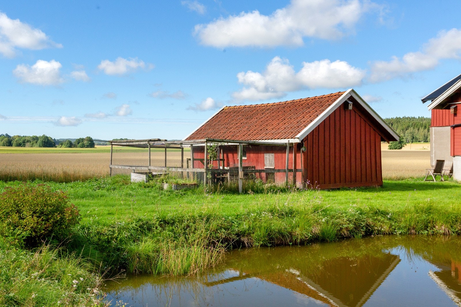 1. Etasje: Enkelt innredet hønsehus m/ utegård