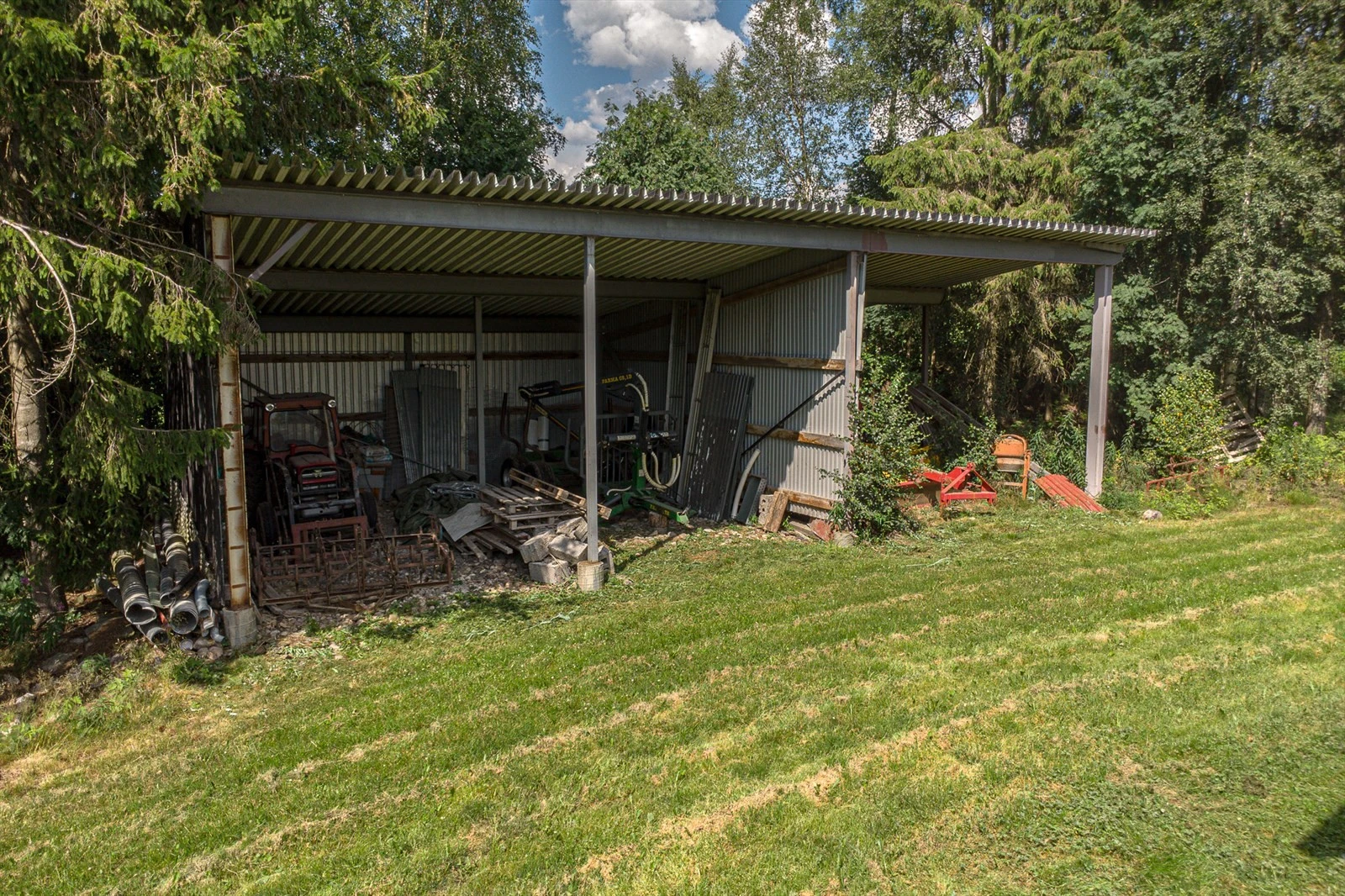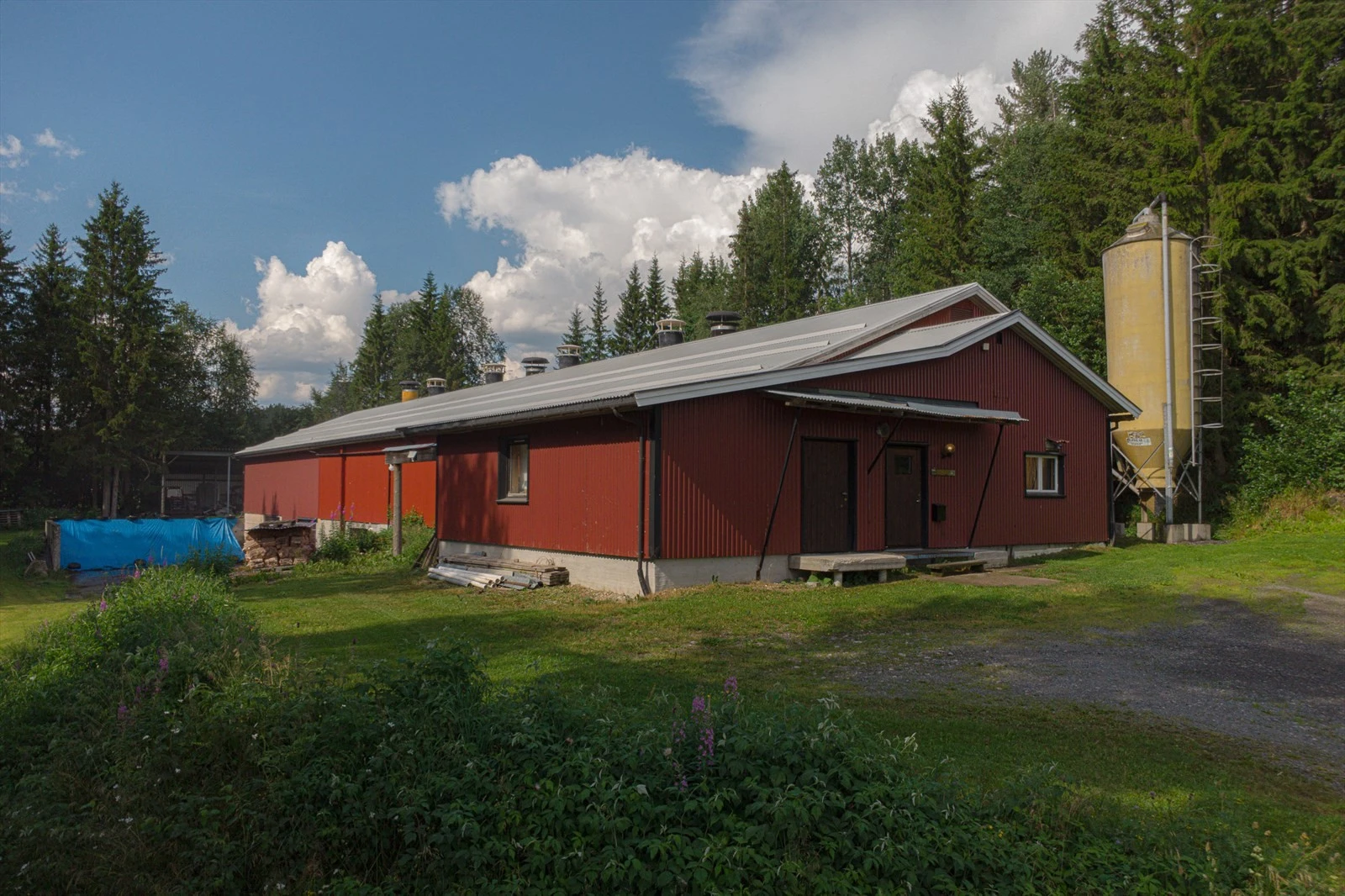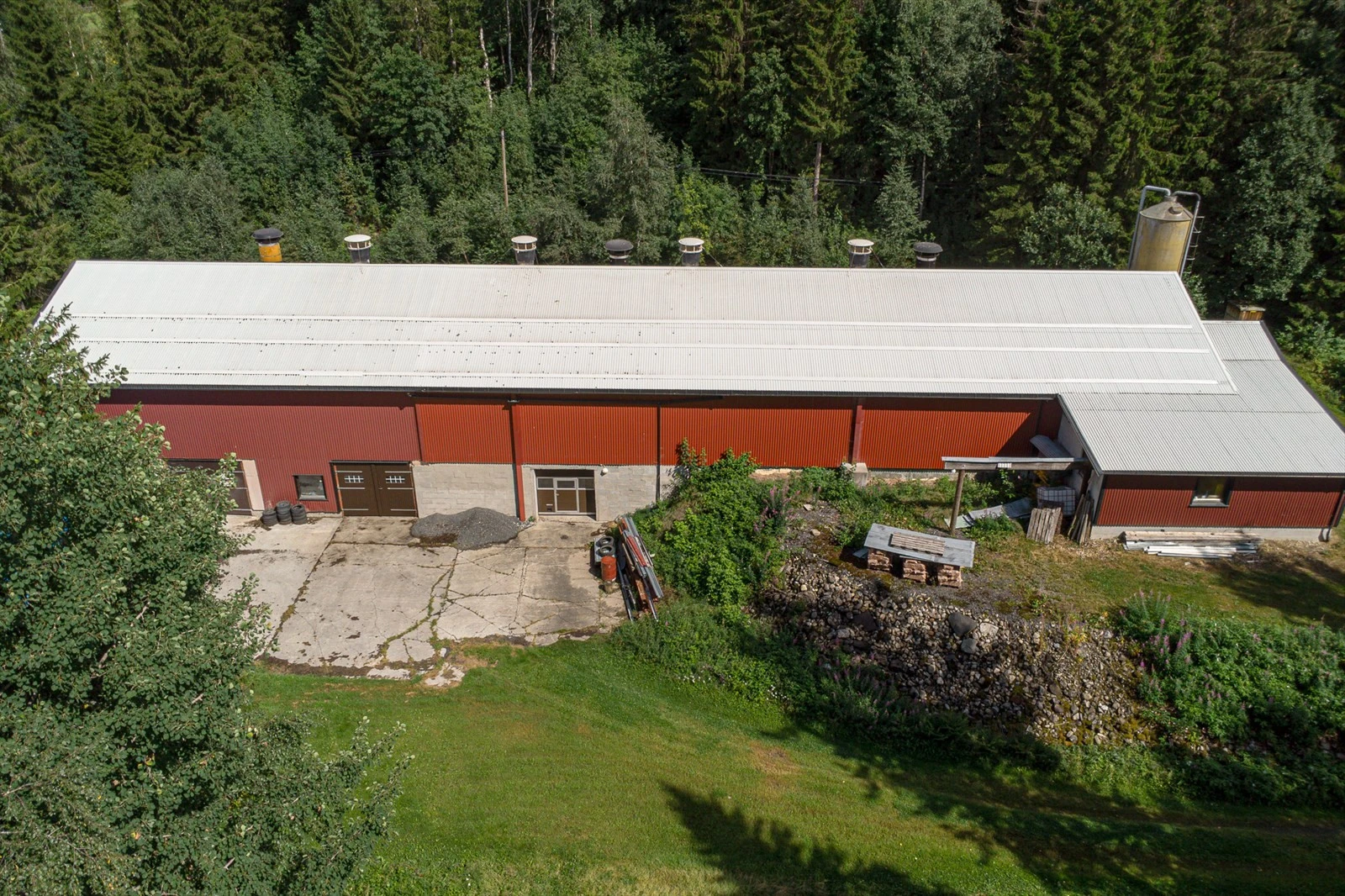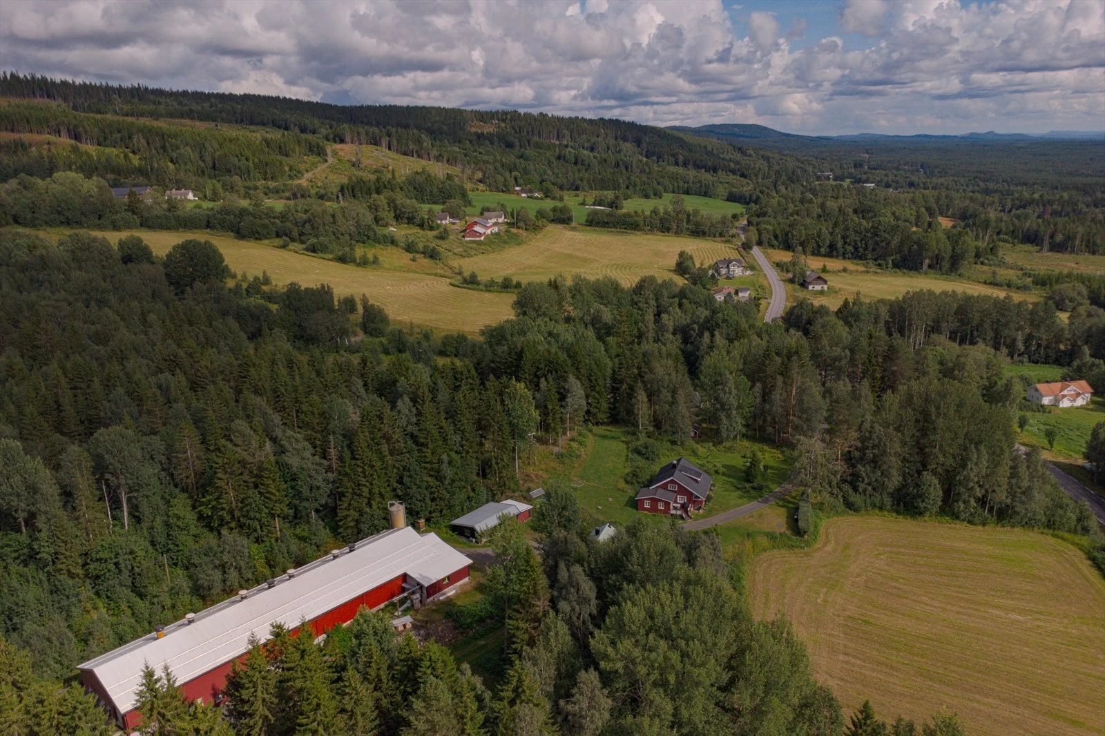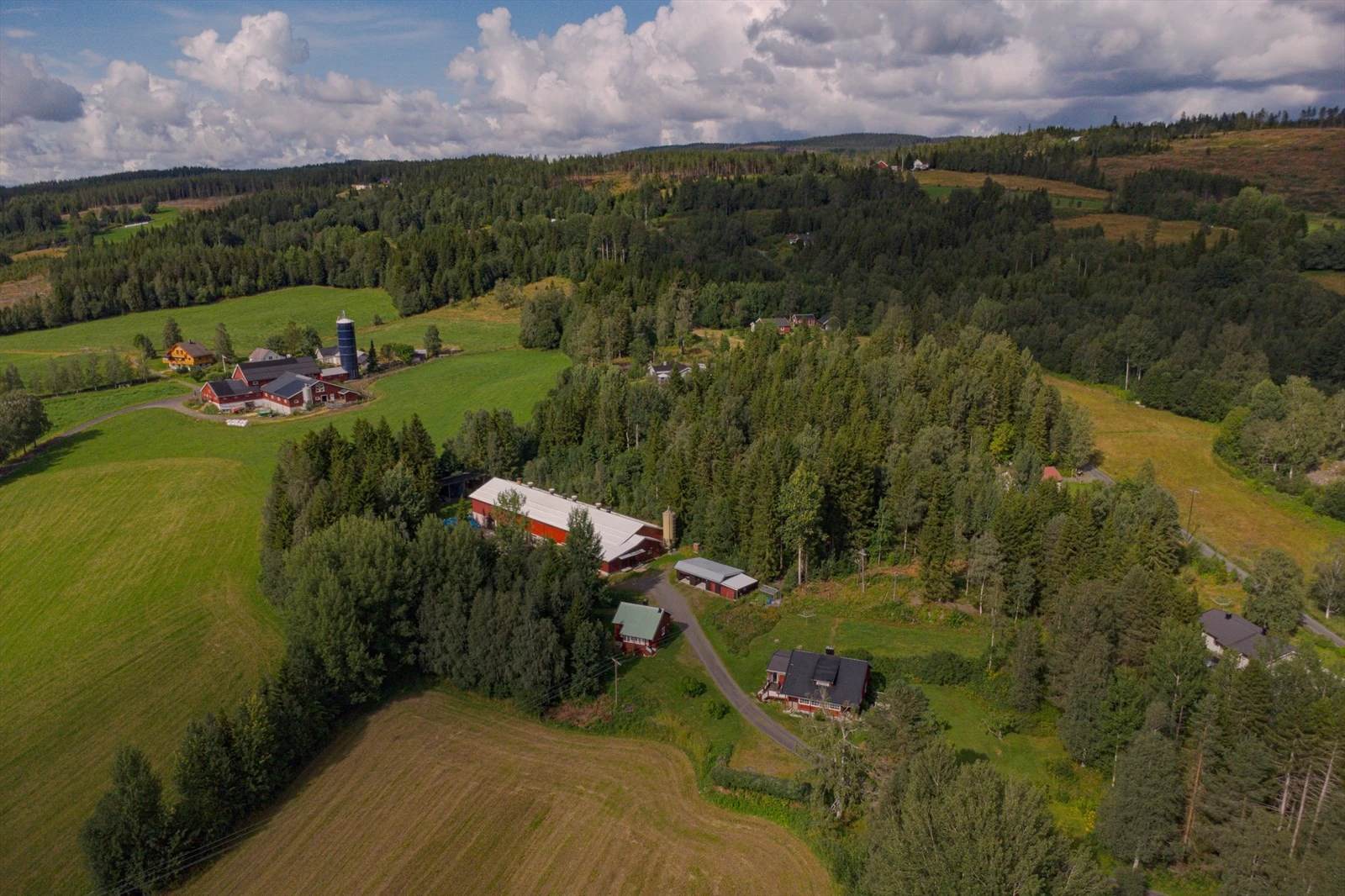 Aktivt gårdsbruk med to bolighus og full konsesjon på egg. 6,7 daa. dyrket og 855,9 daa. produktiv skog