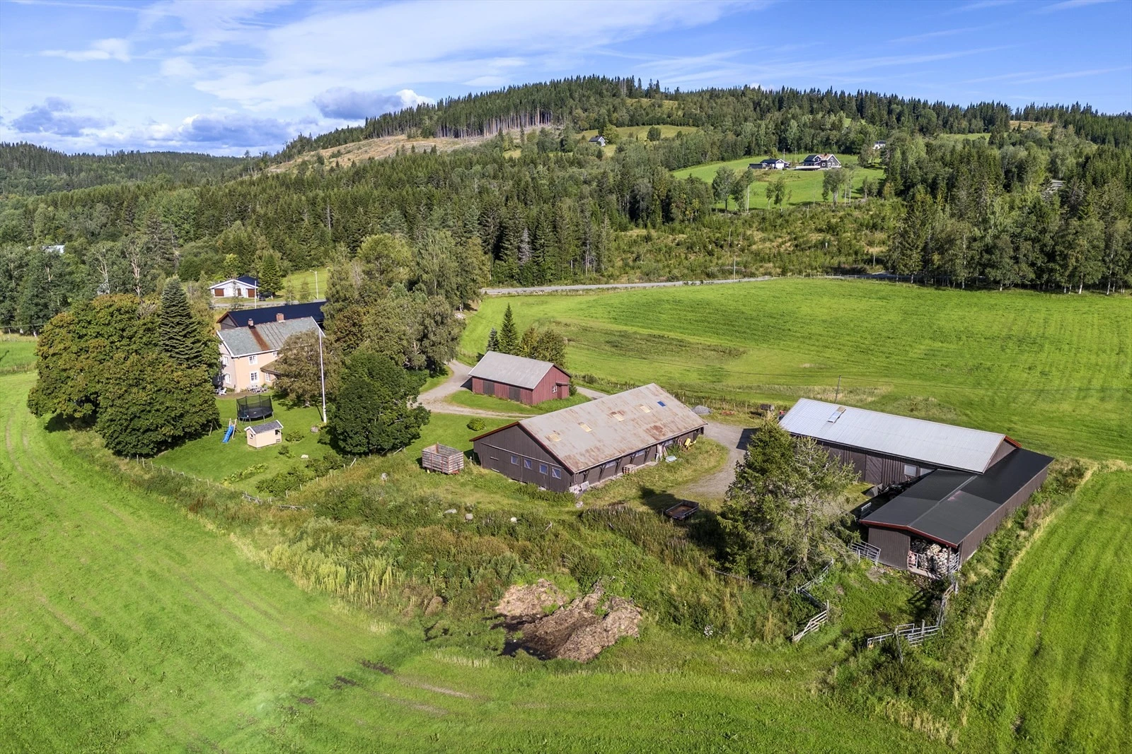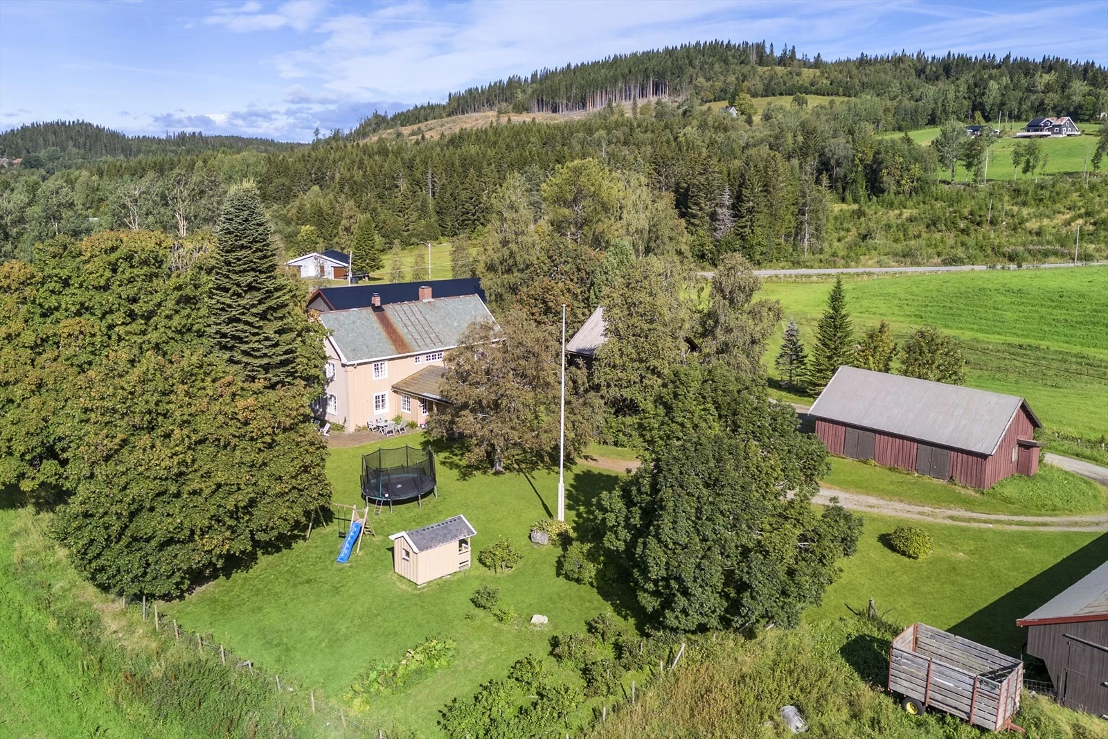Landbrukseiendommen "Hævop"på ca. 572,2 daa med idyllisk beliggenhet | våningshus og 7 øvrige bygg | 163,4 daa fulldyrka