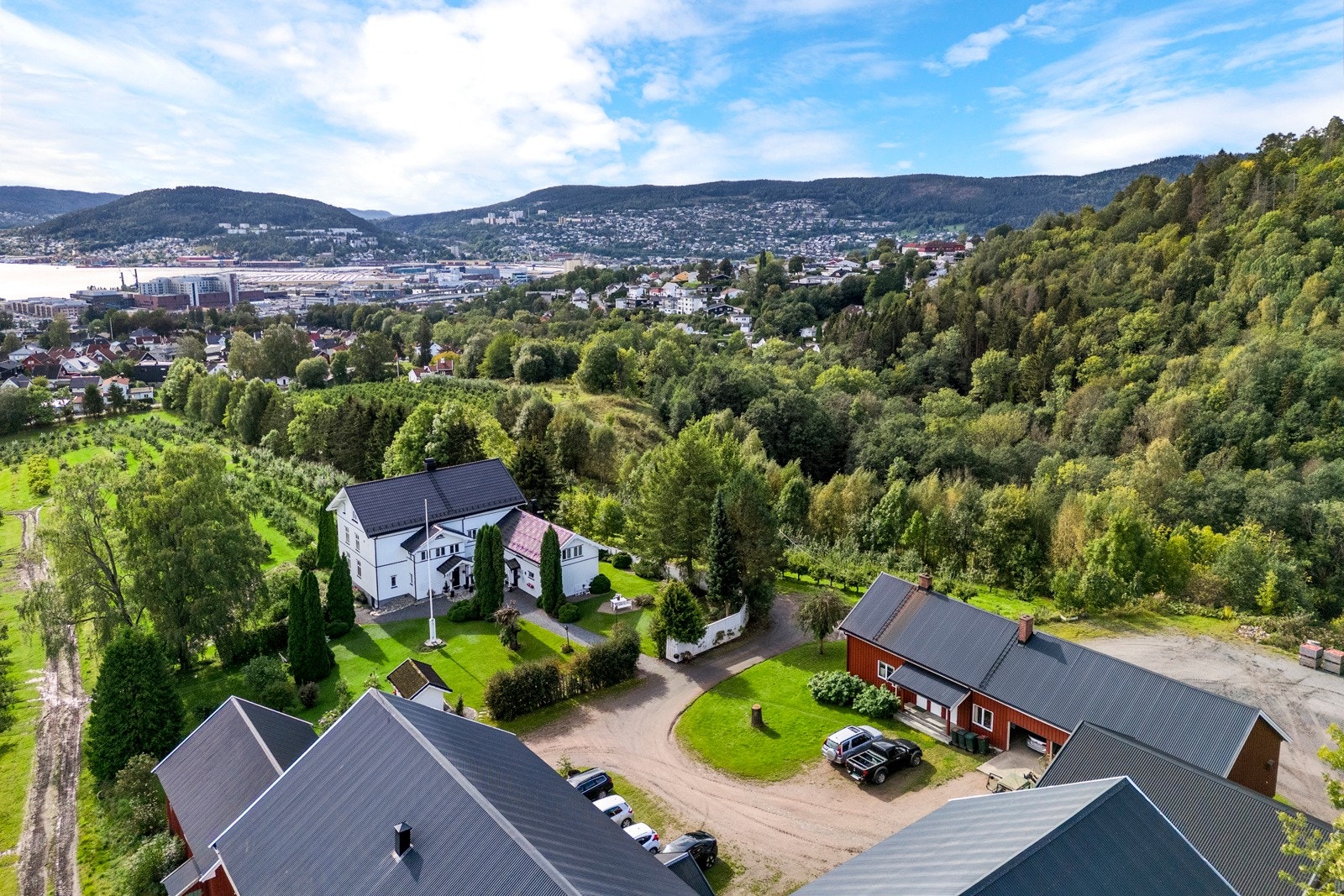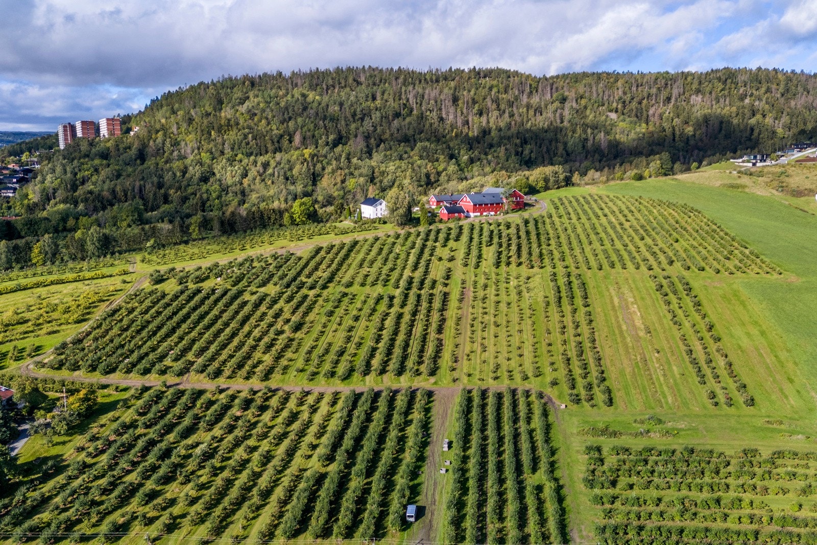 Fruktgård med flott utsikt og sentral beliggenhet nær Drammen | 159 daa dyrket og ca. 580 daa. prod. skog