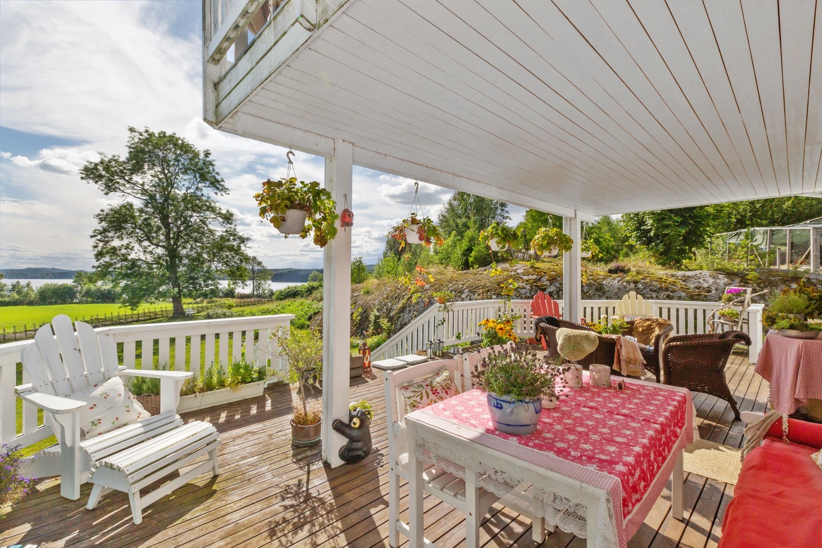 uteplasser med fin utsikt ut over de omkringliggende områdene og Rødenessjøen. Nåværende eier har