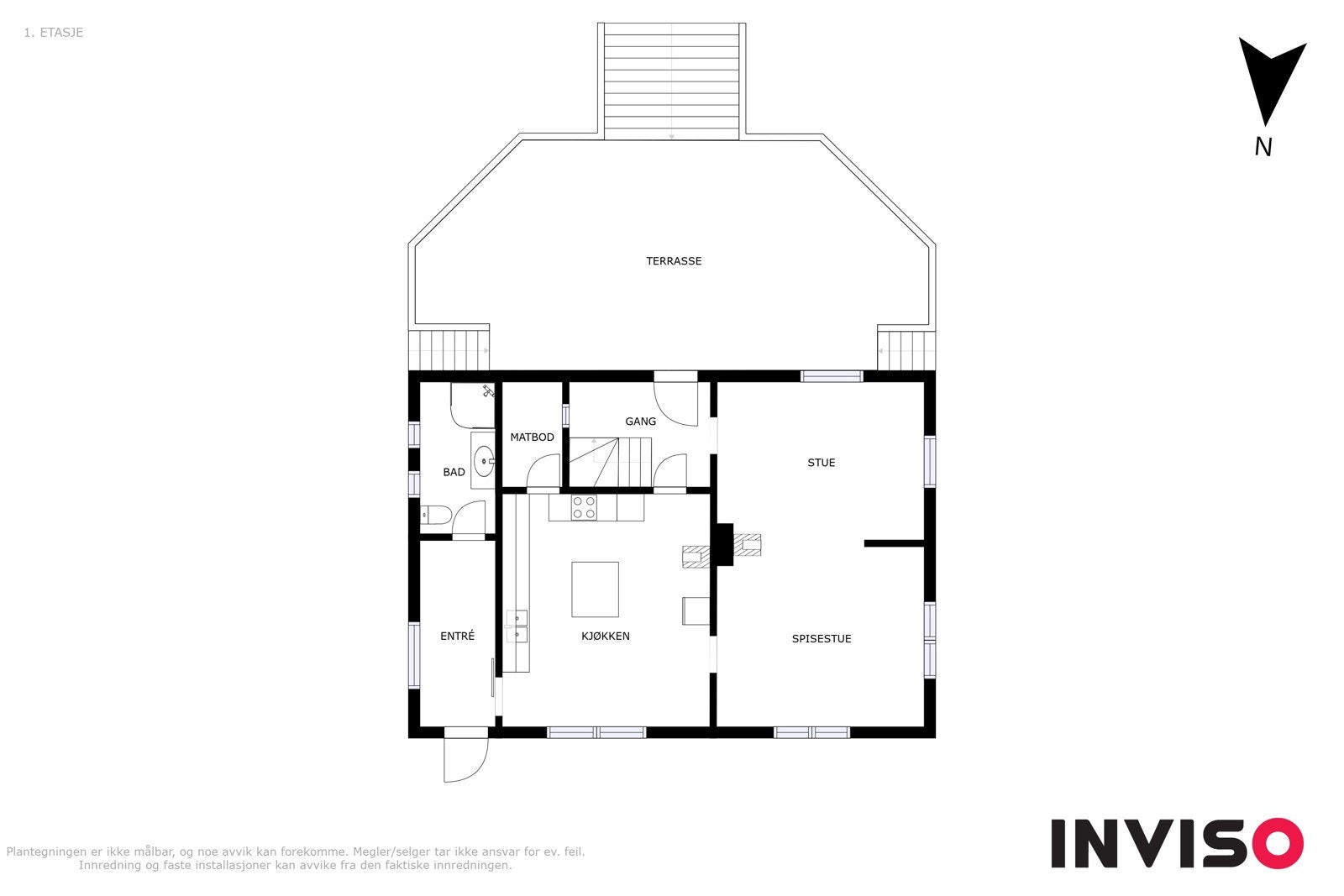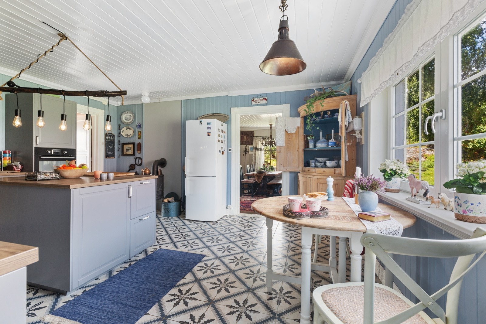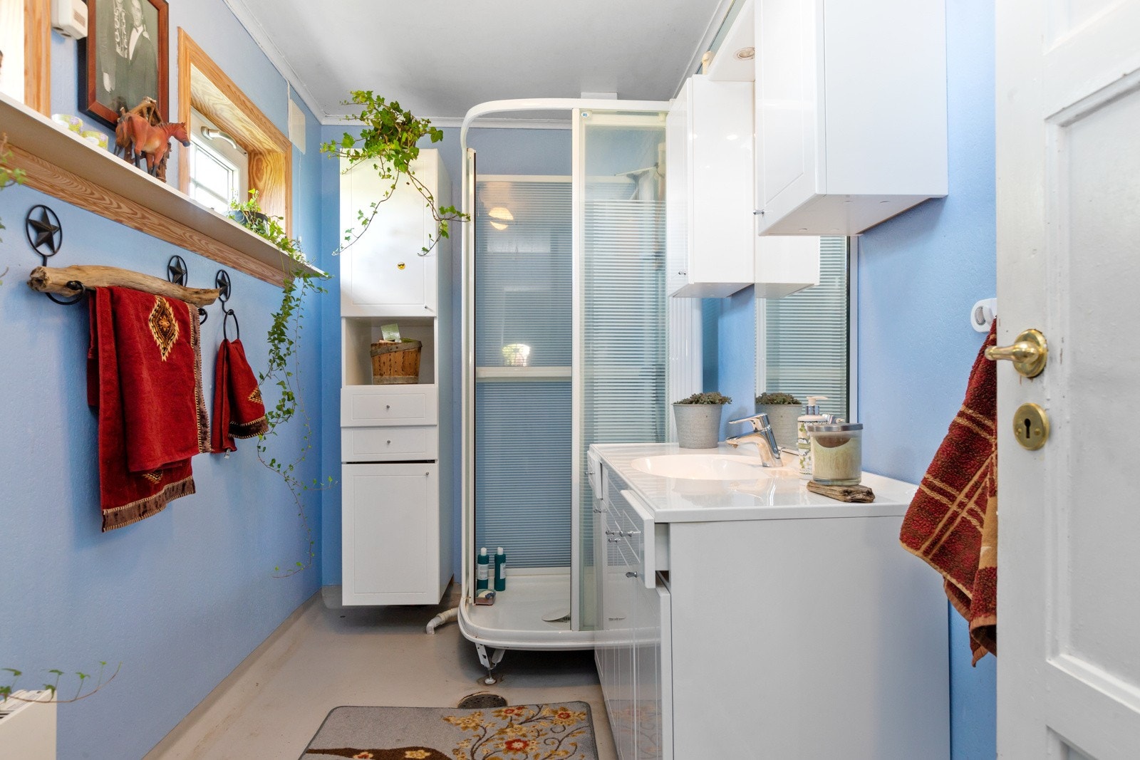 Entre - dusjbad/wc - stort og koselig kjøkken med god arbeidsplass og spiseplass og egen