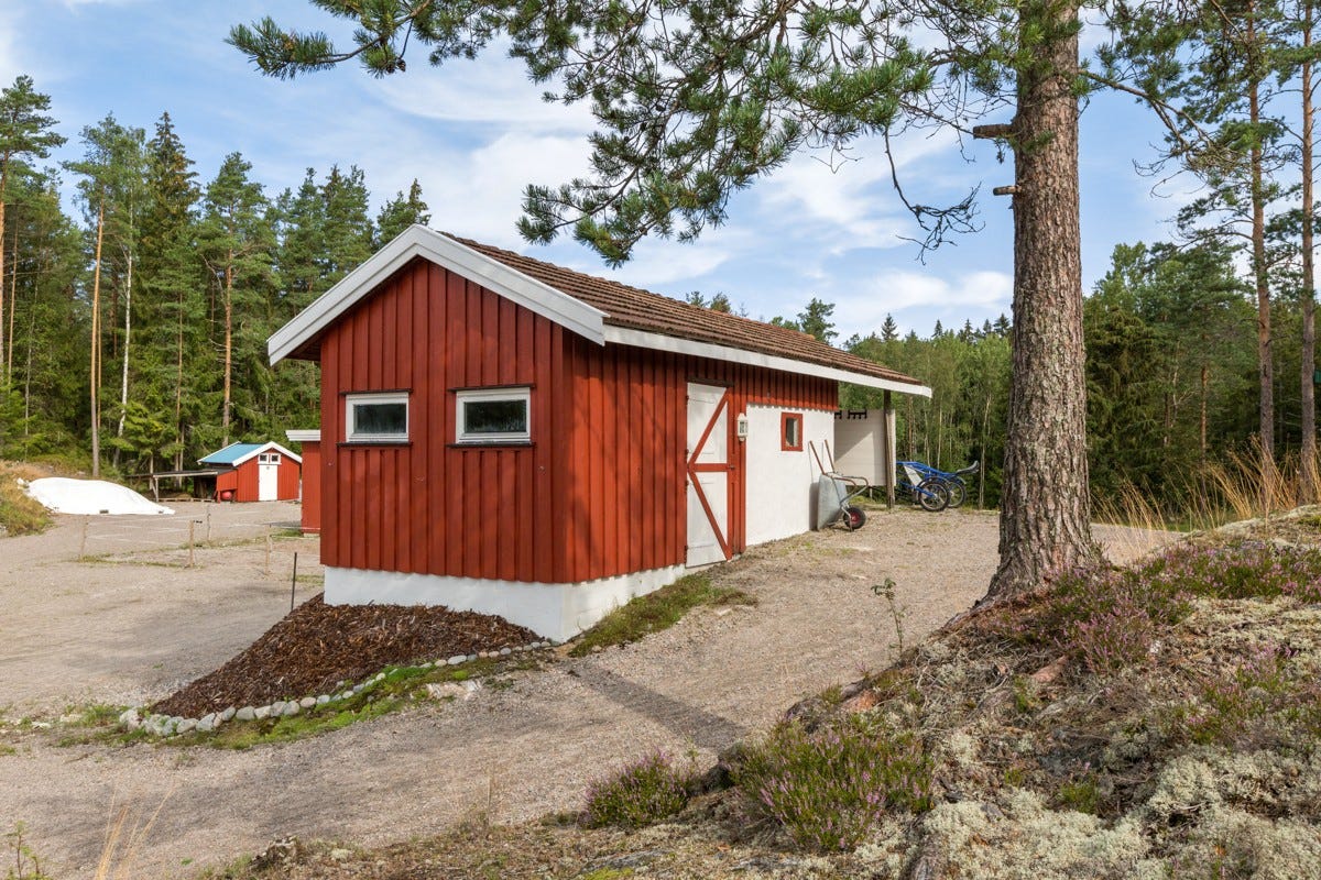 Stallbygningen er oppført i trekonstruksjoner på støpte fundamenter og inneholder to stallbokser.