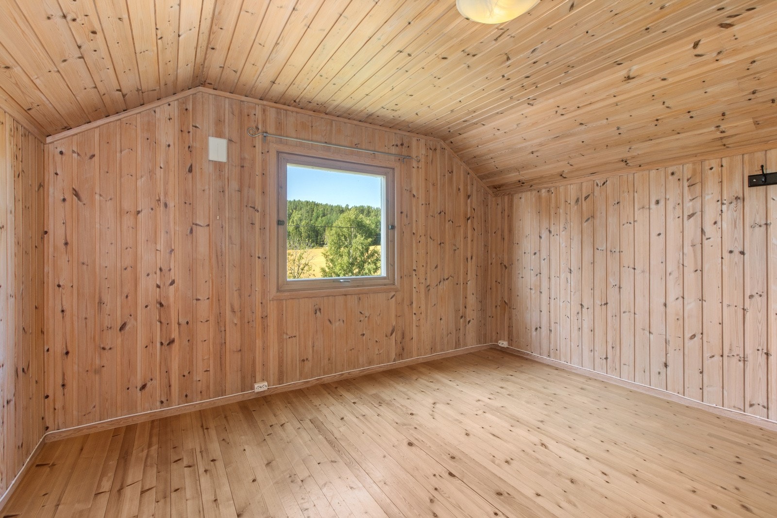 bygningsmassen. I andre etasje finnes to gode soverom med tilhørende kneloft/garderoberom og et
