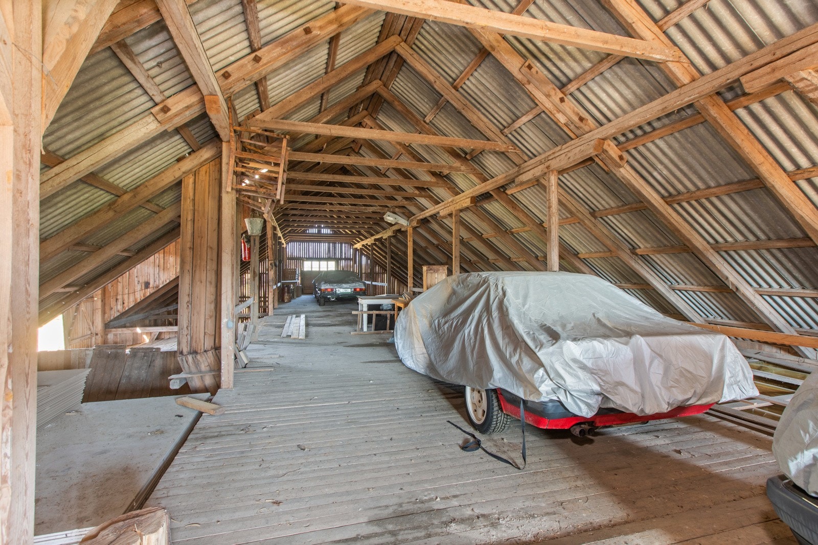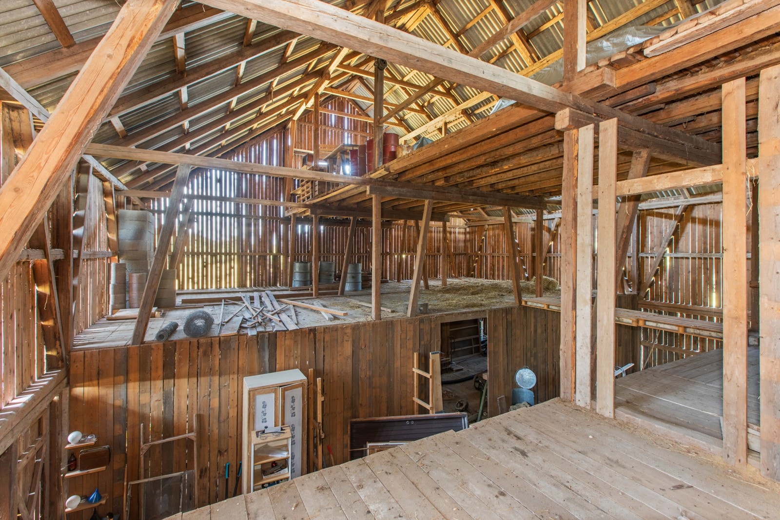 Låvebygningen forøvrig har en tradisjonell utforming med innvendig kjørebru i lengderetning og utvendig