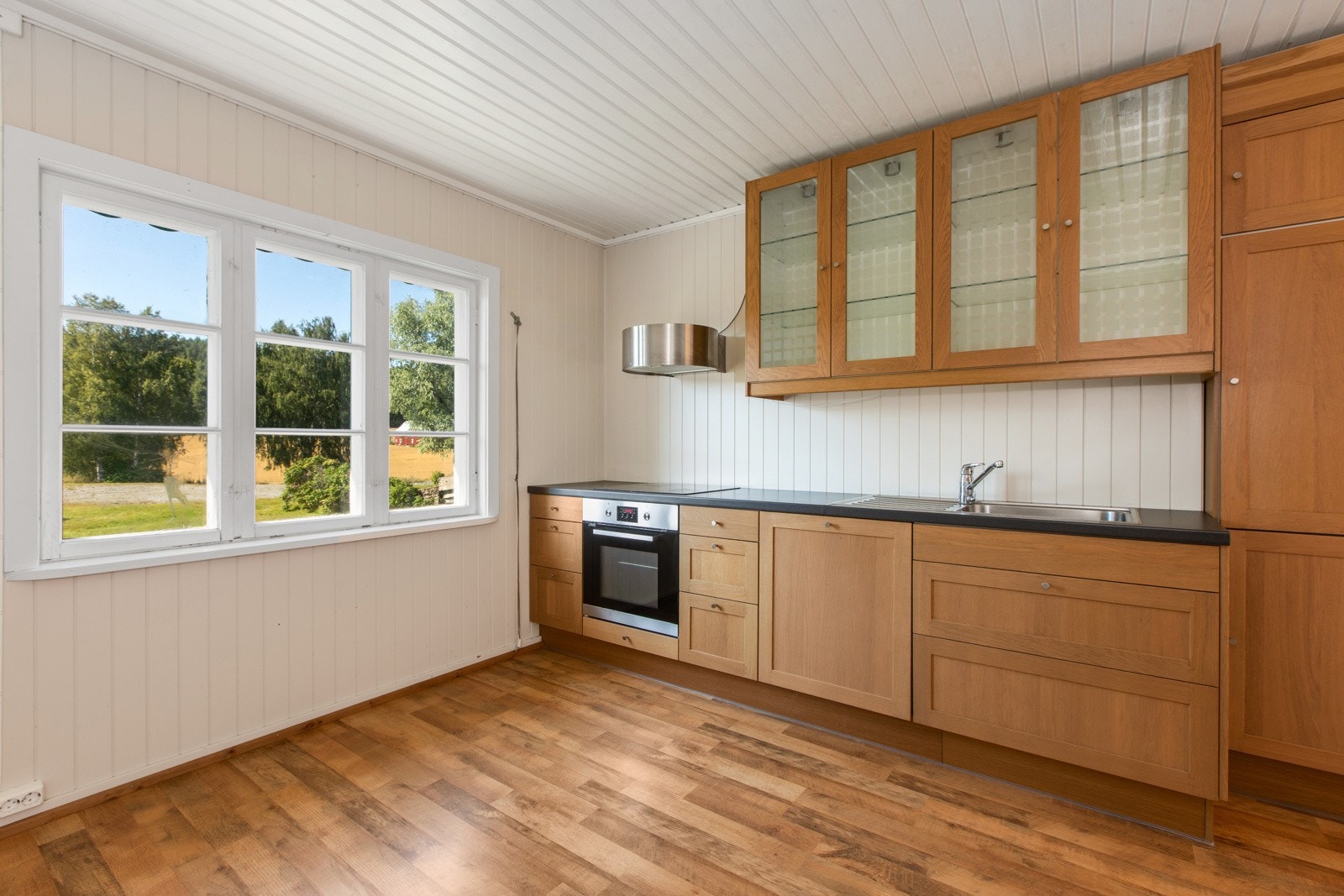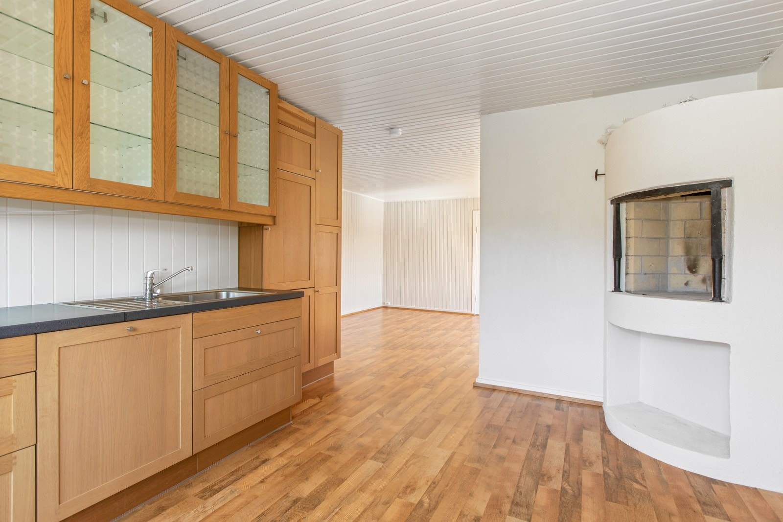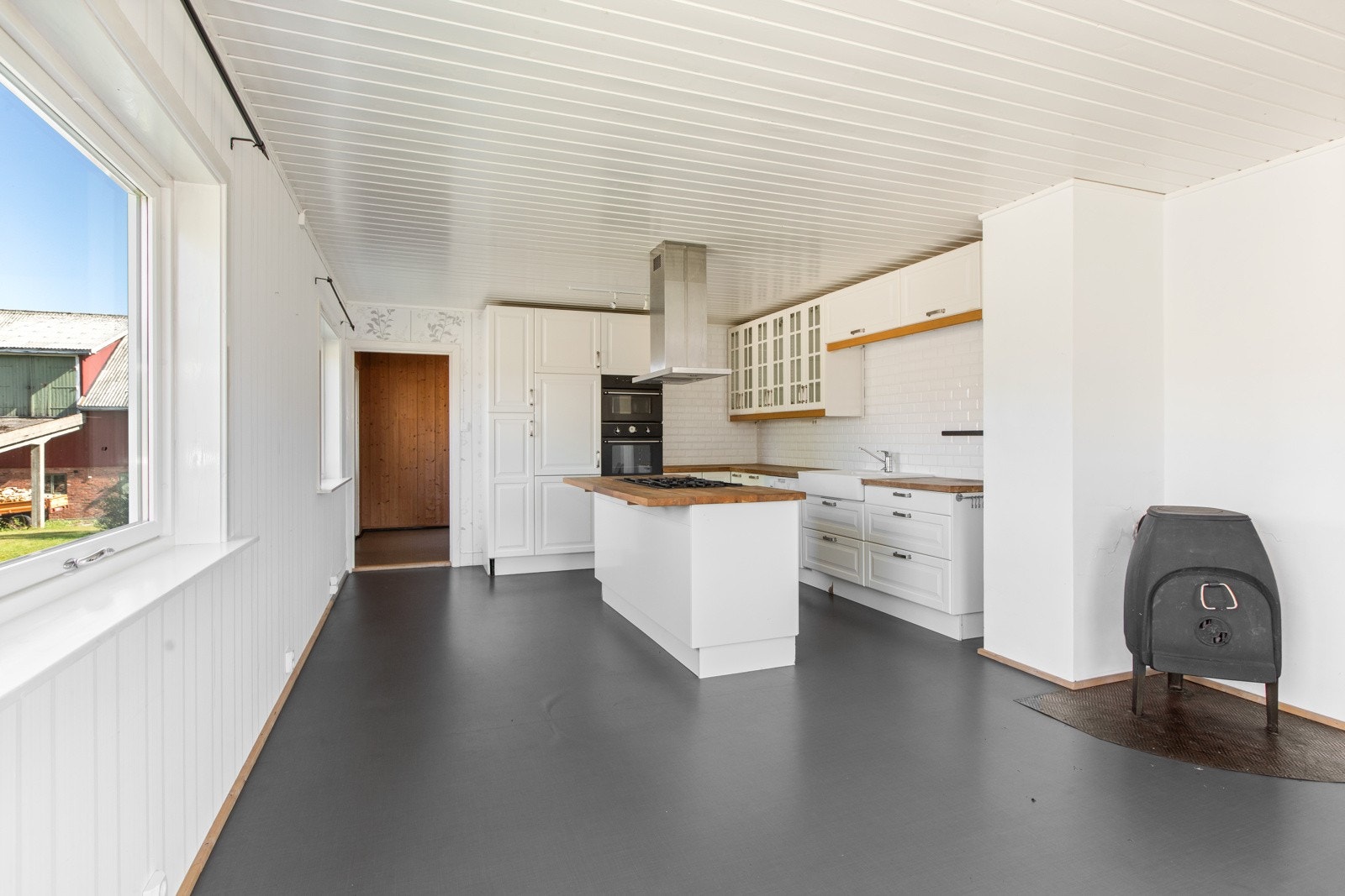 Boligens første etasje består av entré med adgang til et større kjøkkenrom og gang. Fra gangen har man