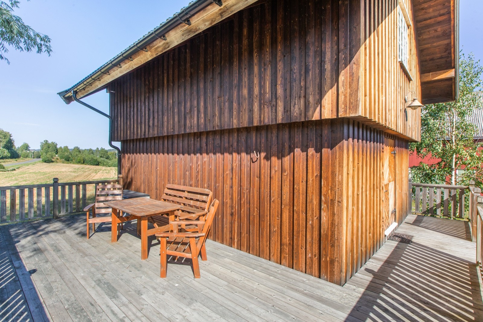 sydvendte verandaen med et forseggjort og solid overbygg som er fint tilpasset den øvrige