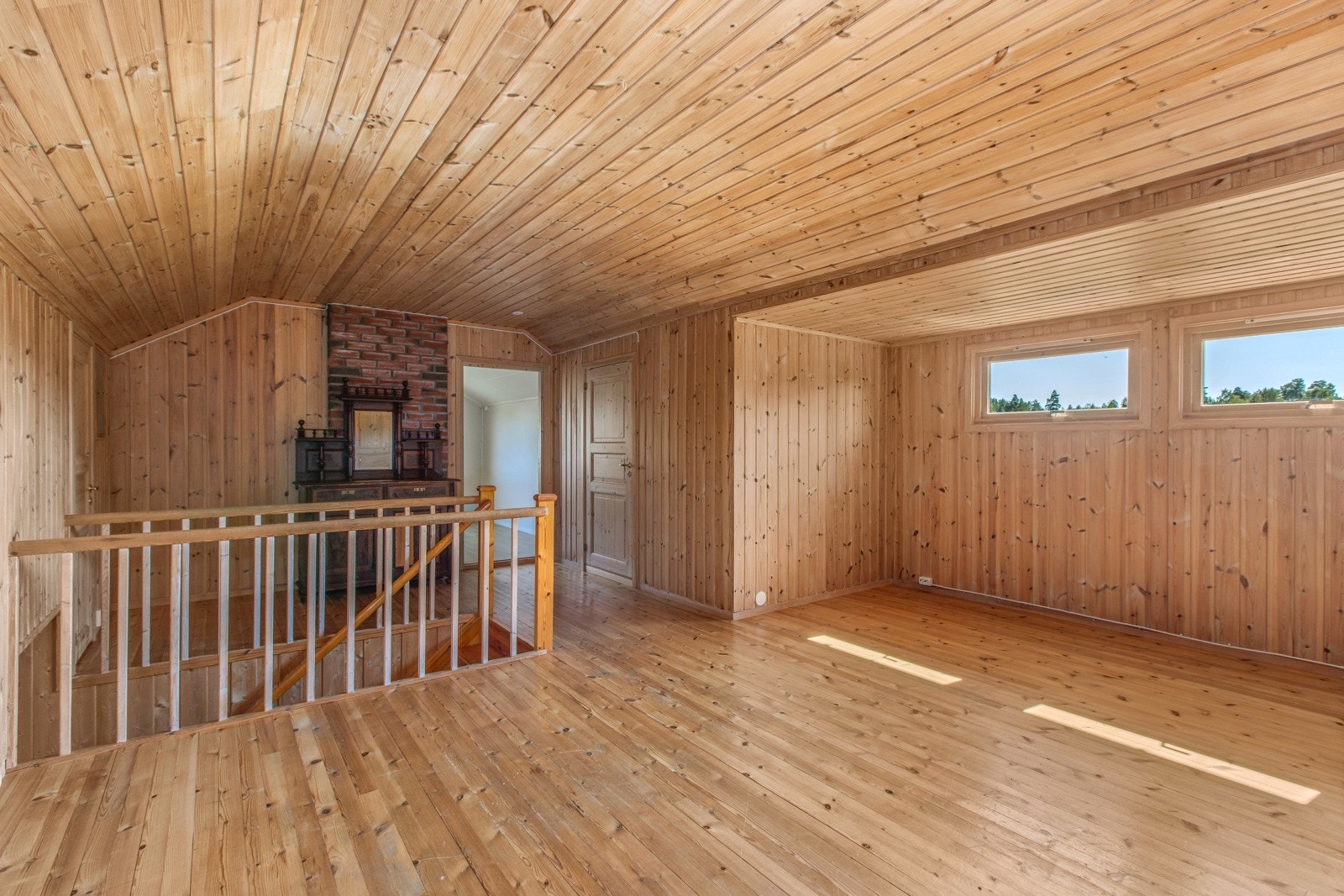 hyggelig loftstue. Det er ytterligere to større kneloft/boder i etasjen. Boligen har i tillegg en full kjeller med