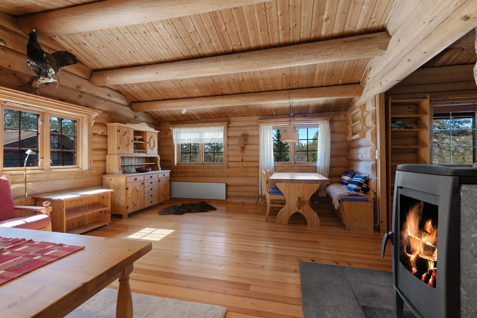 Hoved hytte ble bygd i 1992 og er på 127 m² med en oppstue i midtpartiet. Grunnmur og såle er helstøpt. Laftet i tømmer fra Nord-Østerdalen og satt opp av erfaren lokal tømrer. Etter at tømmerkassa var satt opp stor den i 2 år for å sette seg før man fullførte. Torvtak og murt pipe. Det er innlagt vann og elektrisitet og separat infiltrasjonsanlegg. Både bad og kjøkken har alle fasiliteter. Det er også en badstue i forbindelse med badet. Stue, kjøkken, 3 soverom, arbeidsrom, gang og bod. I ene enden er det vedskjul og alt under ett tak.