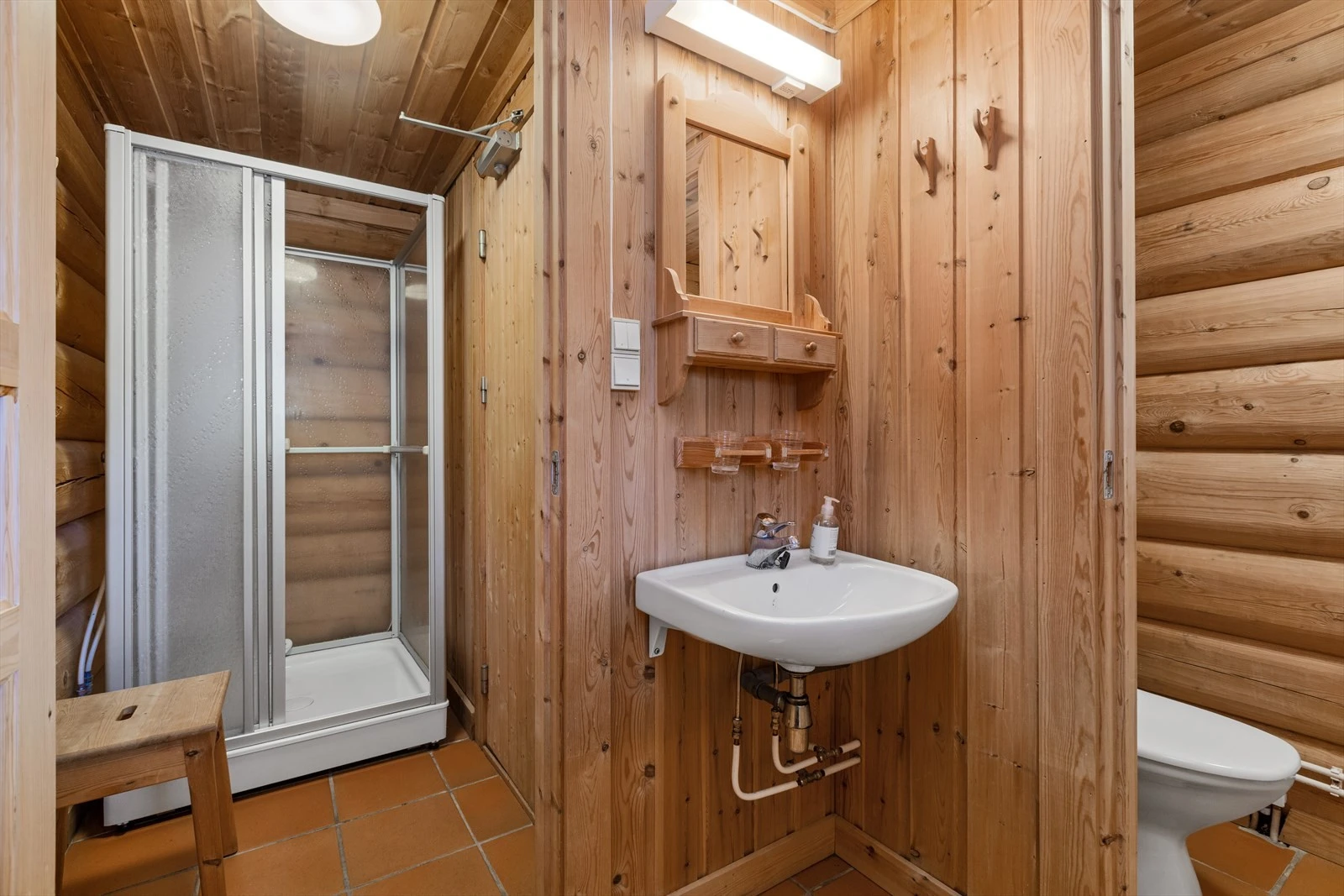 I øvre del, i enden av en traktor veg, ligger en skogs koie med uthus. Denne er beboelig, men ikke påkostet. Den passer bra for en midt-på-dagen rast når man jakter i øvre del. Den ligger imidlertid ikke mer enn en snau halvtimes gange fra hyttetunet. Med enkle midler kan den fremstå finere og kan være et objekt for utleie til jegere, eller friluftsfolk. Denne har behov for utbedring, men det avhenger av bruken. Vedskjul/uthus må totalrenoveres i kombinasjon med ny utedo, men avhengig av hva du ønsker. Uansett representerer den en tomteverdi siden det i dag er strengere å få satt opp et bygg i utmarka enn tidligere.